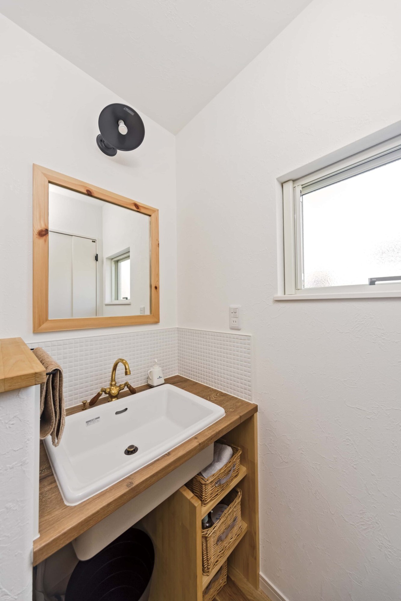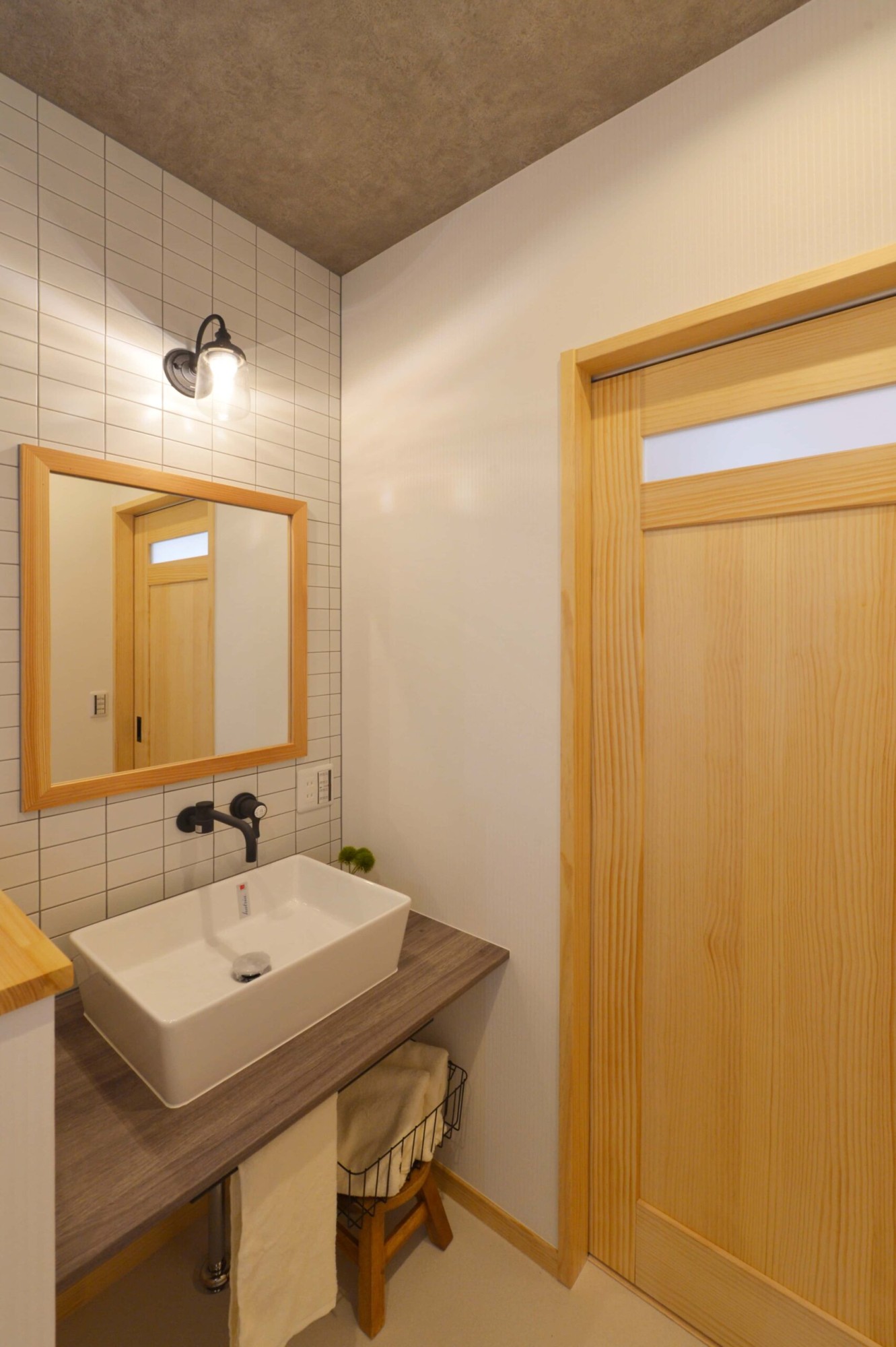 洗面台とミラーは既製品を使用していますが、