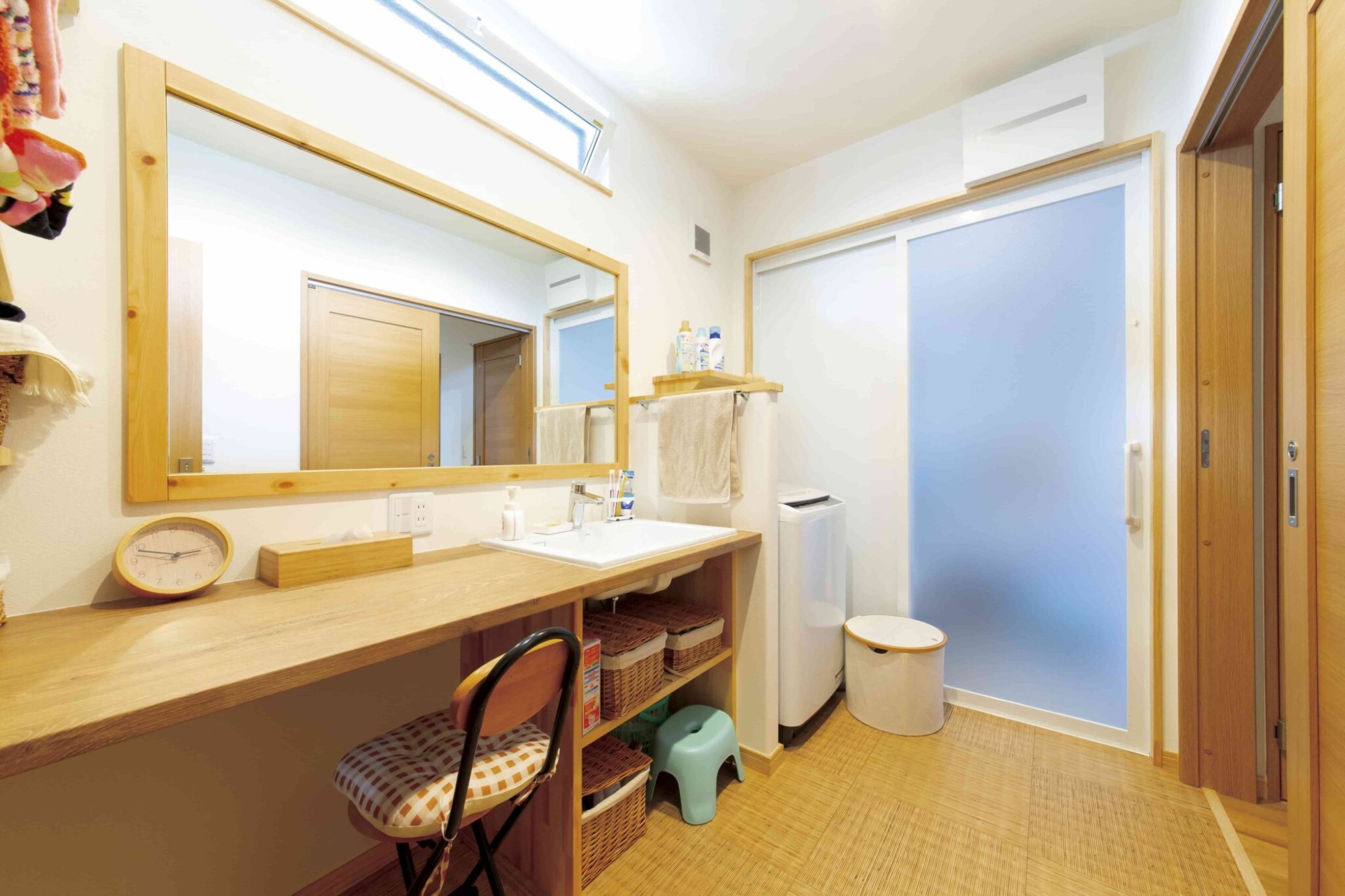 ワイドな洗面台は収納スペースもたっぷり