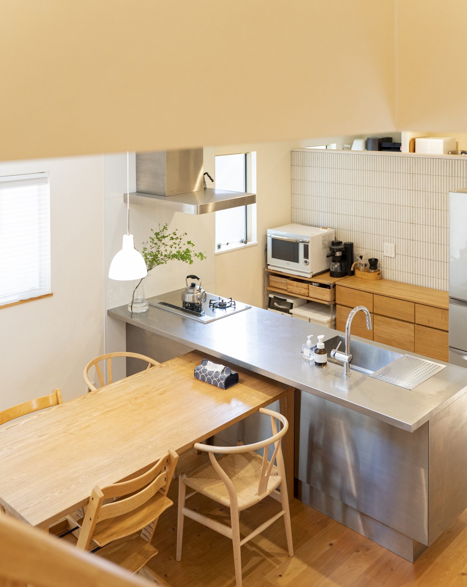 ダイニングテーブルを正面に設ければ、距離が近い分配膳などの動線はスマートになりそうです。