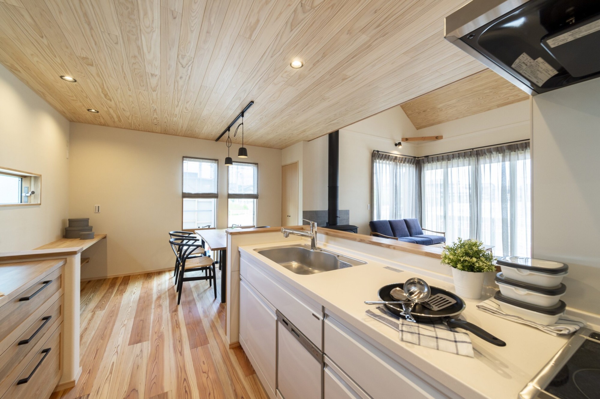 キッチンの周りを360度回遊できるので、キッチンの周りに人が集まってワイワイ出来るので、ホームパーティなどがお好きな方にお薦めスタイルです。
