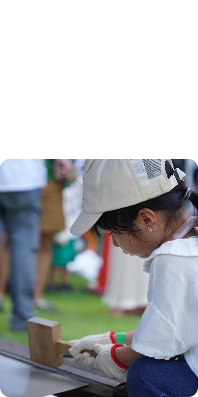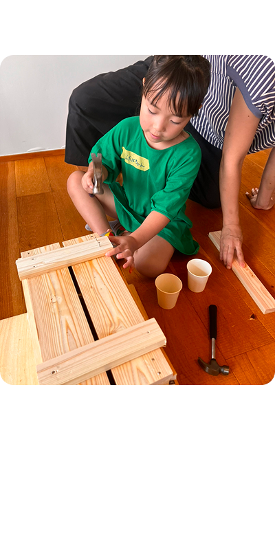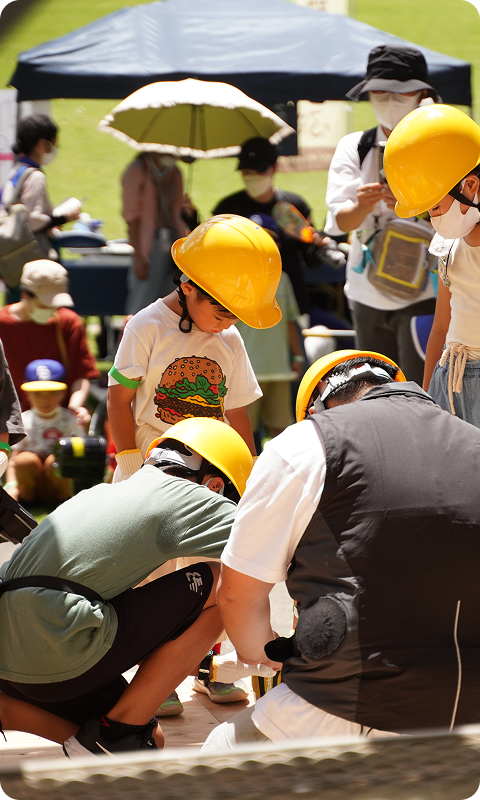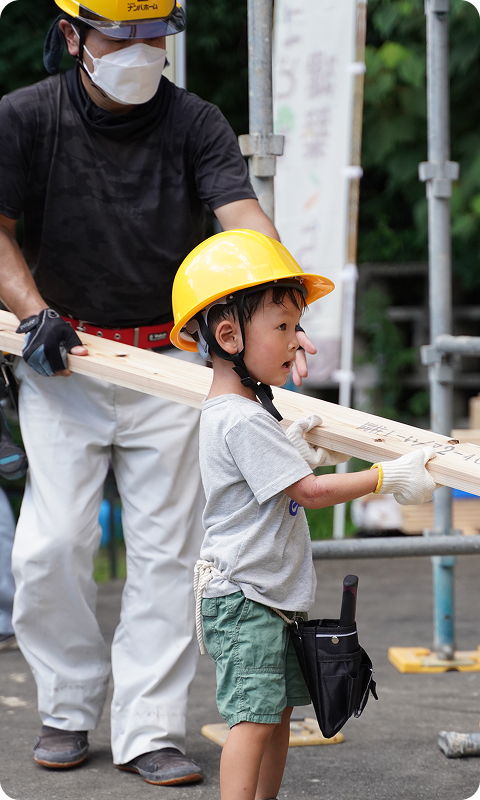 ナンバホームでは、地域とともに、子どもたちが本物の木に触れ、ものづくりの楽しさを体験できる「こども建築くらぶ」や、街をきれいにする「街なか清掃プロジェクト」などを行っています。