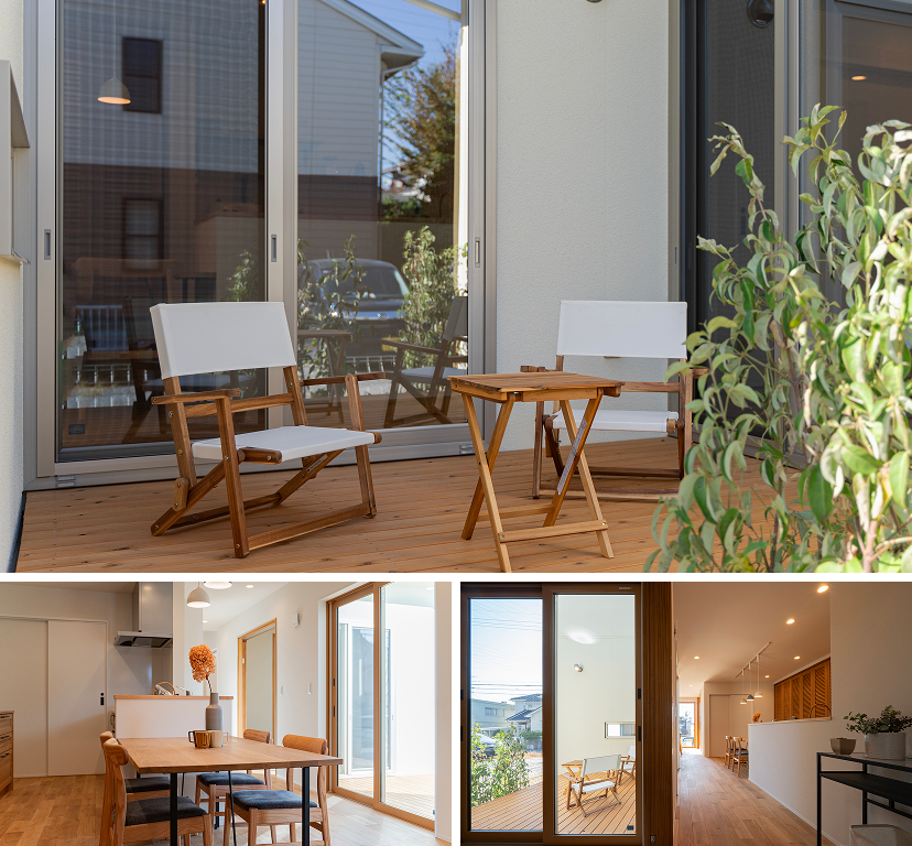 室内とつながり外へとひらかれた空間。それは、使い方を限定しないプライベート空間に現れたアウトドアスペースです。自然や季節を感じながら、ティータイムを愉しんだり、友人とBBQパーティを好きなときに。