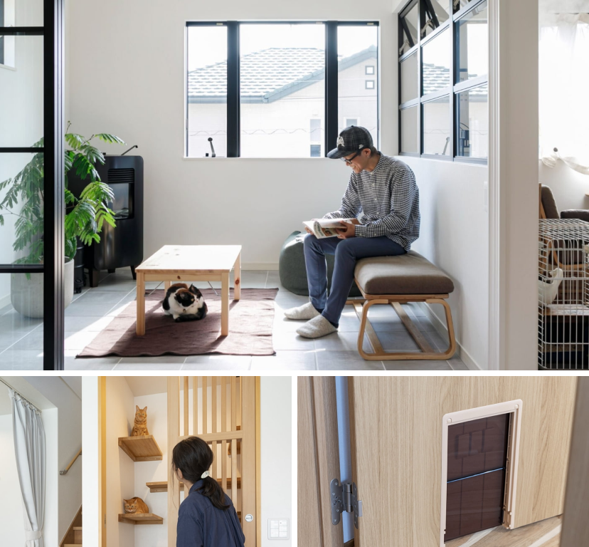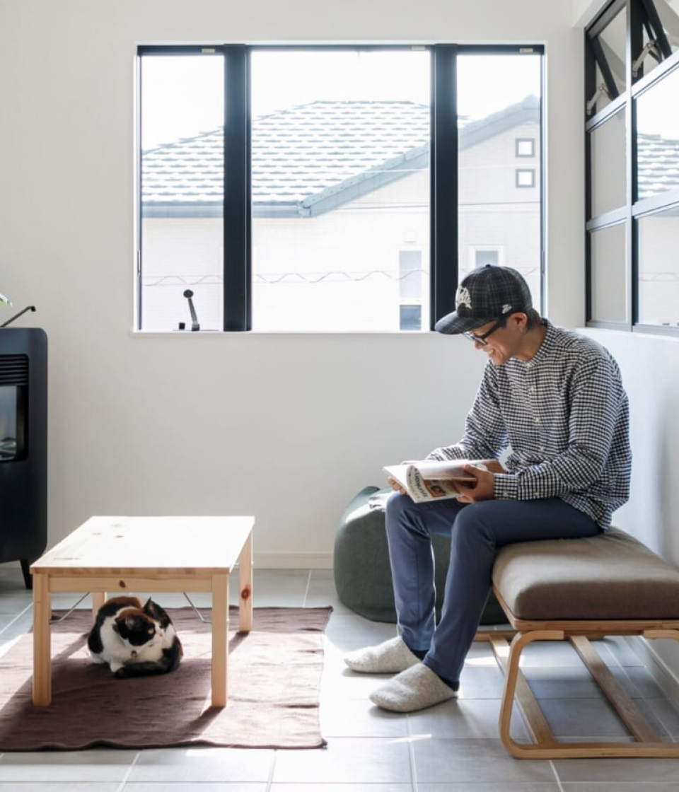 人だけじゃない、大切な家族の一員も楽しんで暮らせる。それは、家族全員のことを考え、それぞれにあった導線や空間があるから。大きな窓で、ひなたぼっこ。庭でゆったりしたり、走り回ったり。家族全員のびのびできます。
