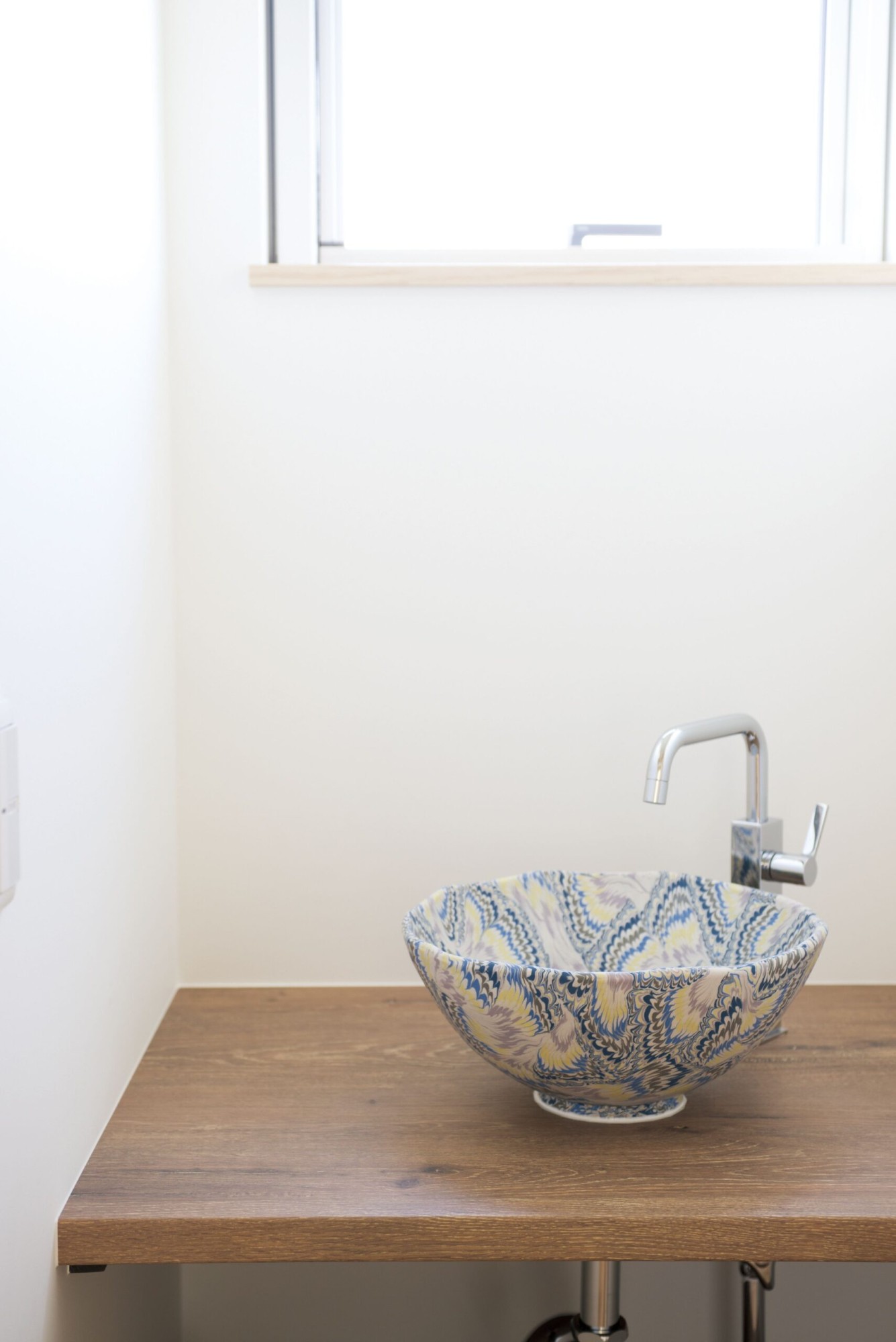 トイレの手洗いボウルも自分たちで選んでいオリジナルに仕上げました。