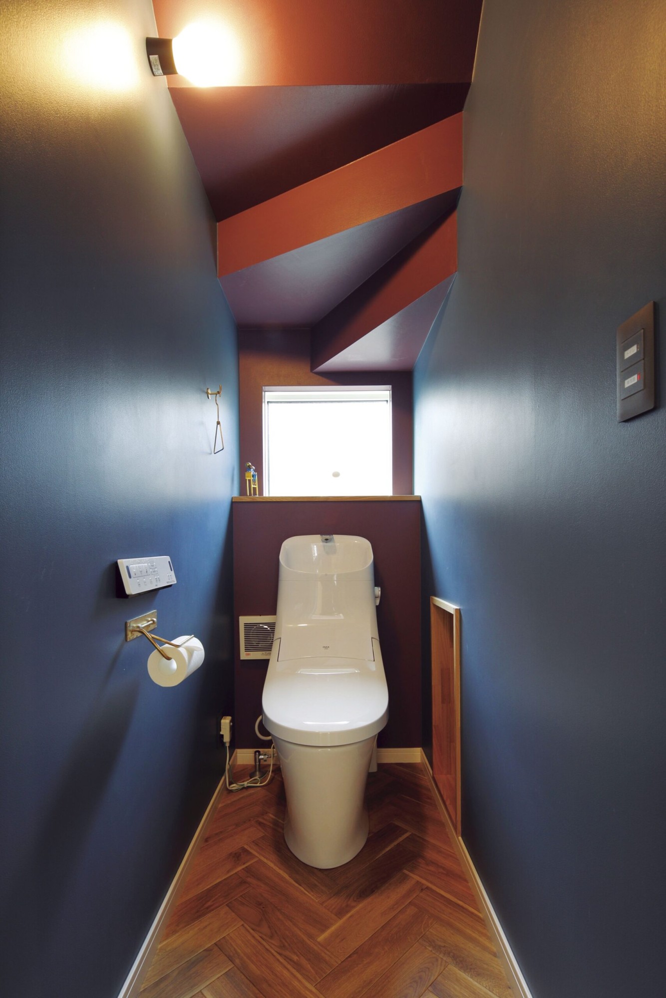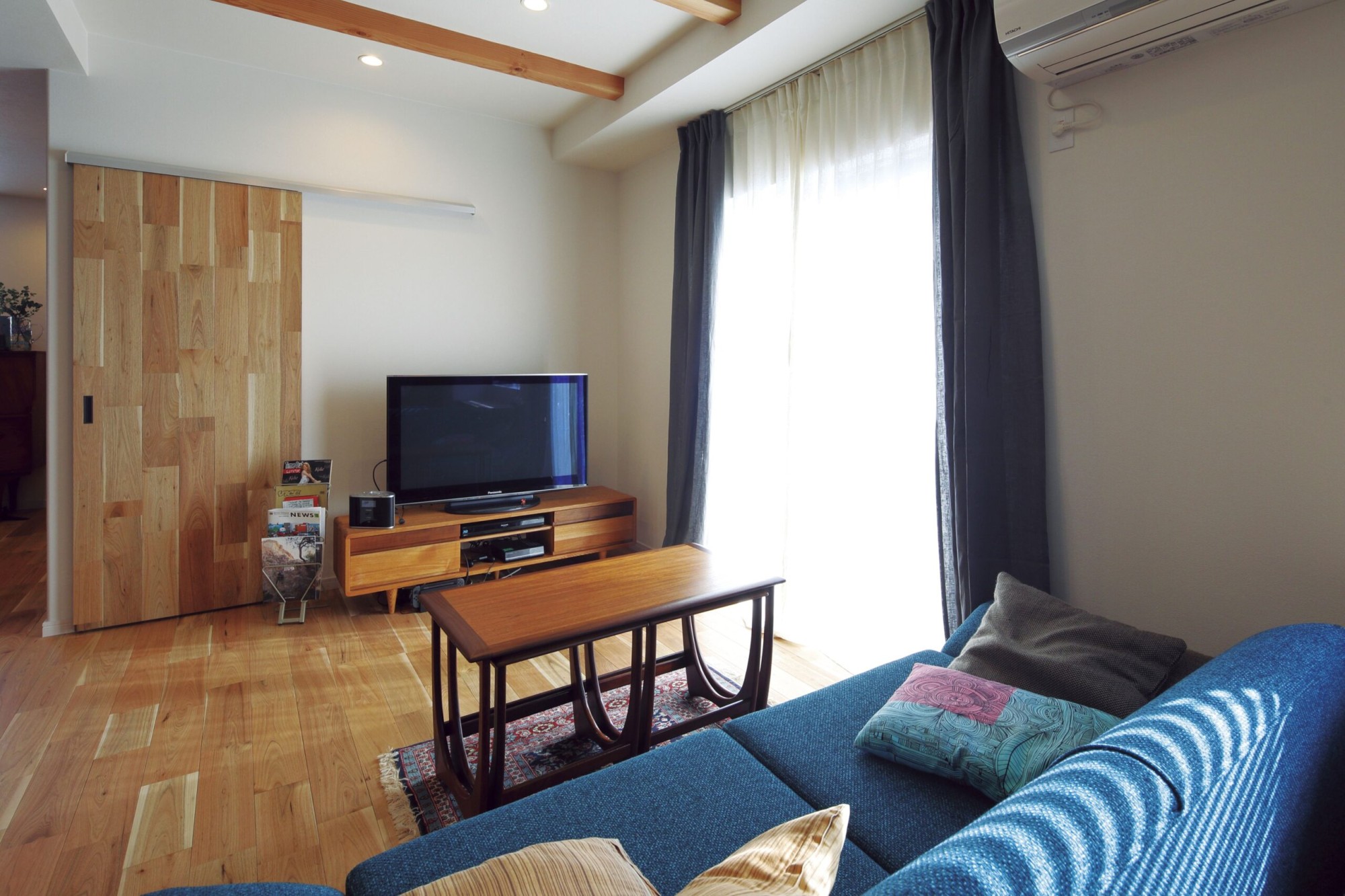 ウオルナットの床材×ブルー♪このお家のインテリアアクセントです。