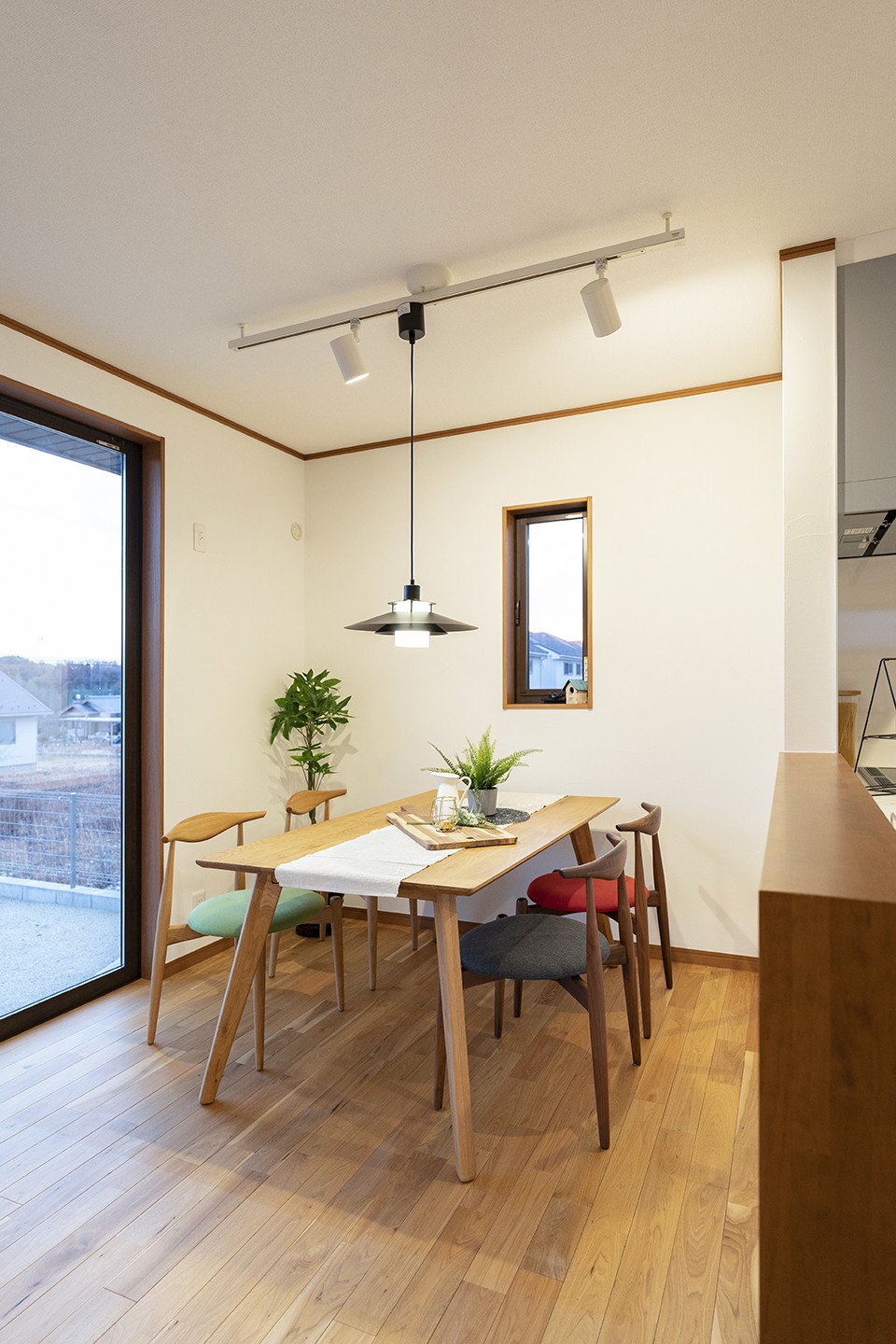 4人家族が楽しくご飯を食べるダイニングスペース。大きすぎず、小さすぎず、、、ちょうど良い空間です。