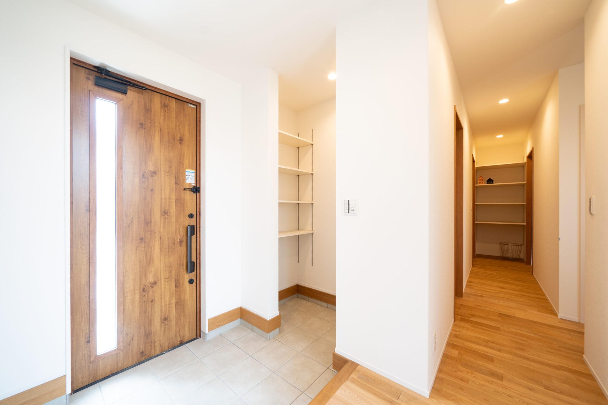 シューズクロークに廊下に可動棚も設置しています。