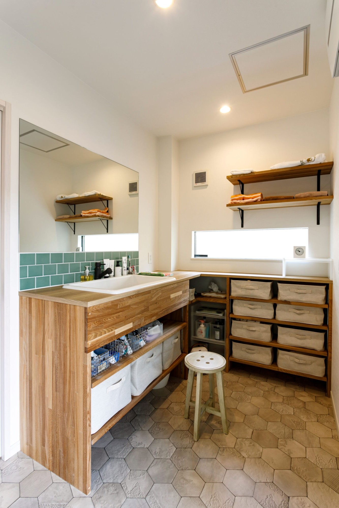 家族が多いと朝の支度で混雑することもある洗面所。この広さなら、会話をしながら余裕をもって支度ができます。