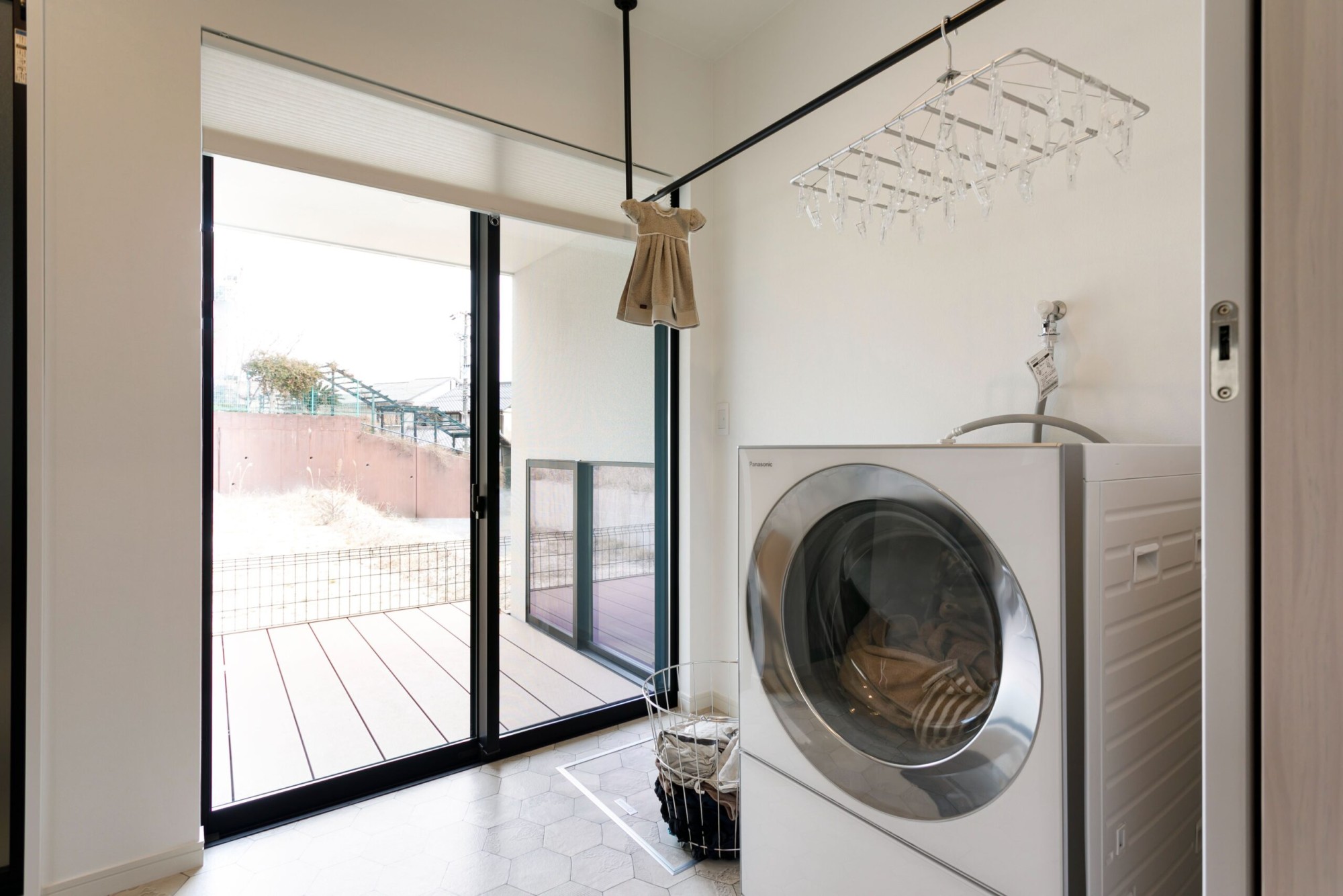 雨の日もここで洗濯は完結。移動する手間はありません。毎日の家事がラクチン♪