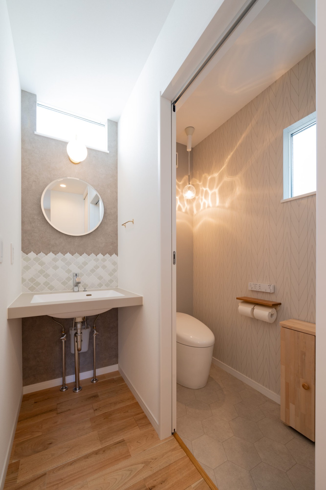 暗くなりがちな洗面は窓を設置し採光を確保。