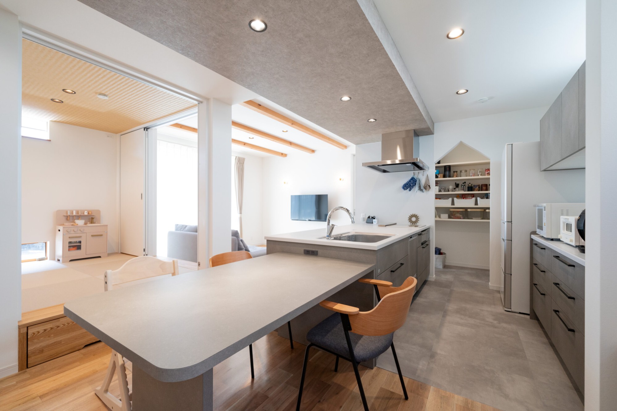 横並びテーブルやパントリー設置で家事のしやすさも大事にしています。