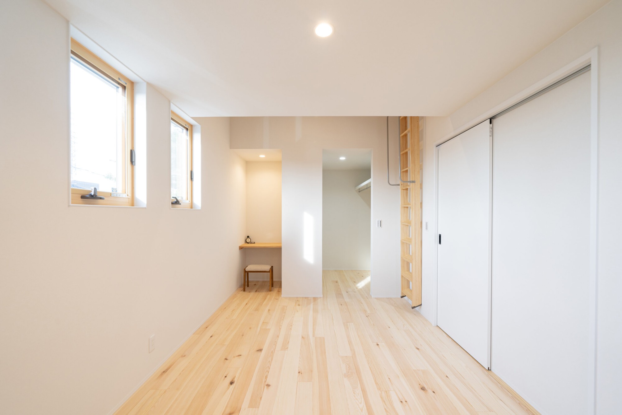 寝室はウォークインクローゼットとロフトを設け収納力を最大限確保しました。