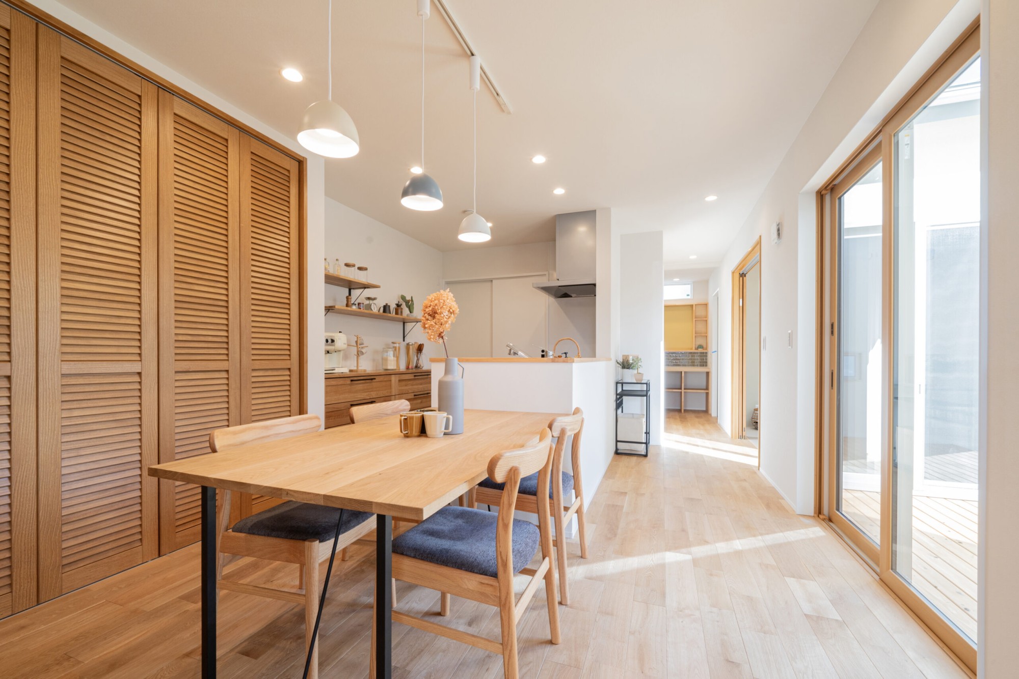 ダイニングはキッチンに横並びの配膳しやすい配置に。