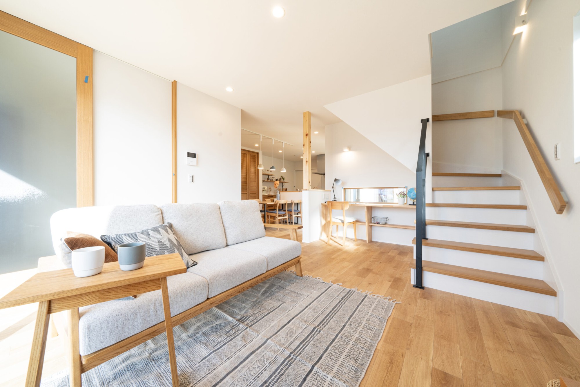 リビングは大きな窓で採光をしっかりと取り入れる設計にしました。