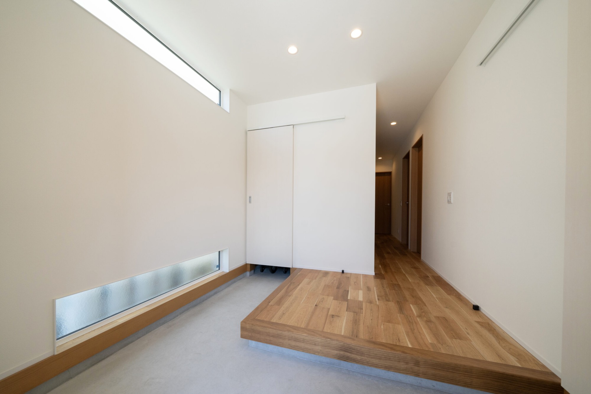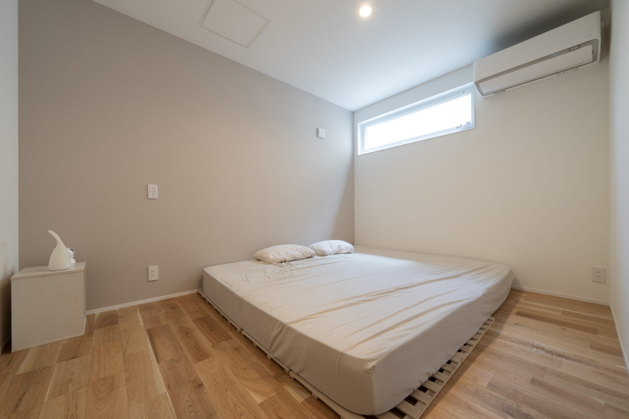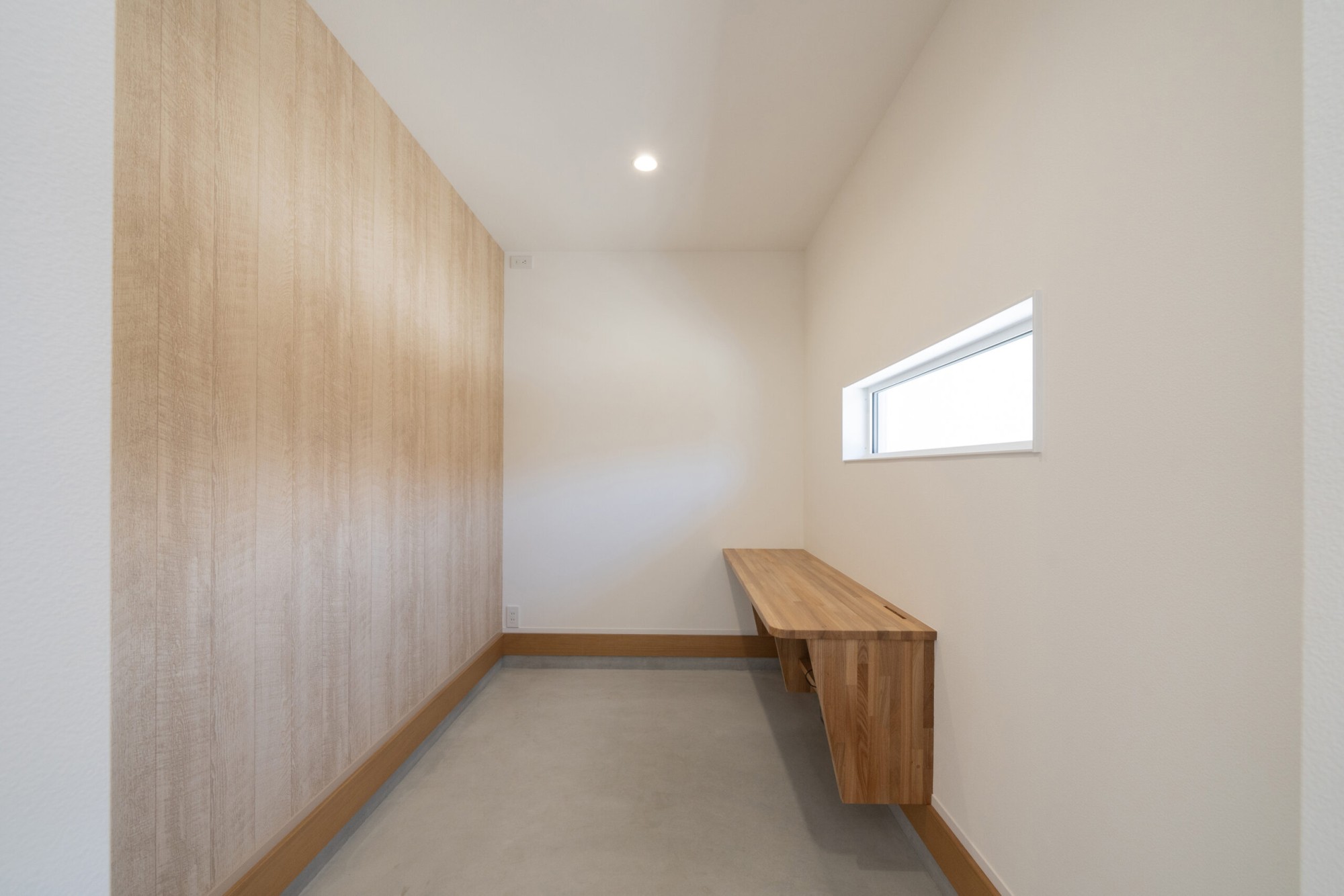 1階に寝室があるため、大きな窓ではなく上部に小さな窓を設置しました。