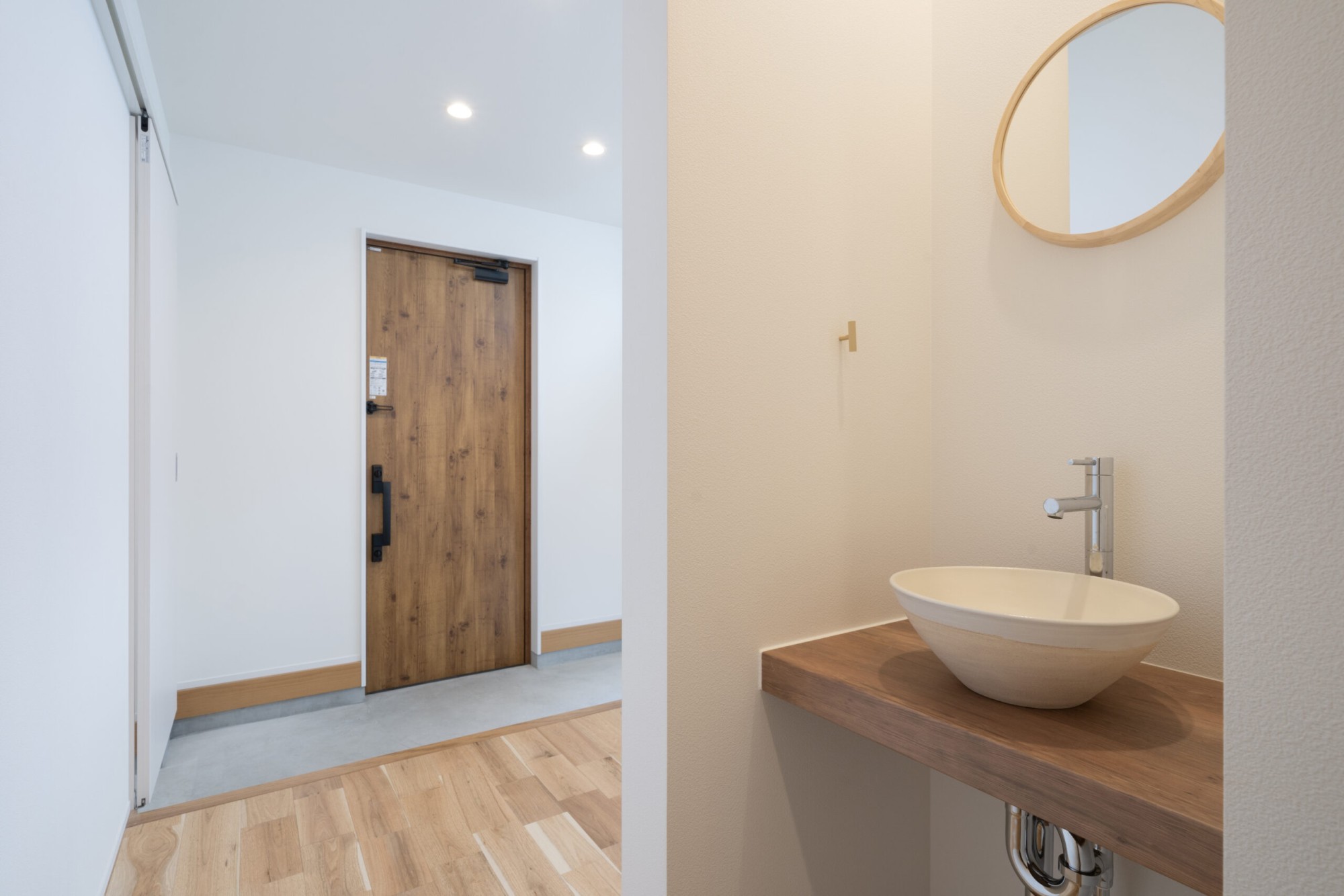帰ってきてすぐに手を洗うことができるように玄関の近くに洗面台があります◎