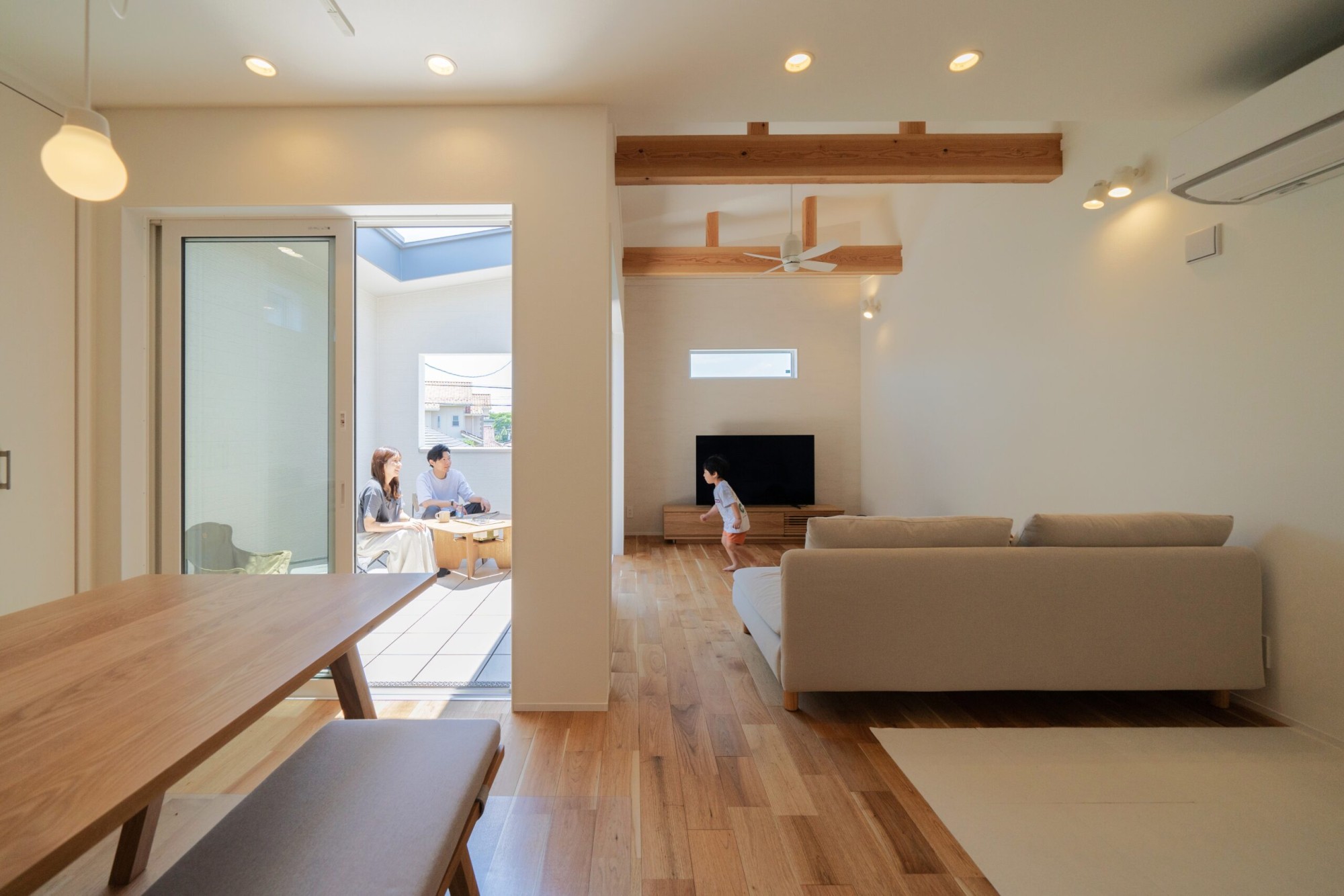 リビングからもダイニングからもアクセスできるアウトドアリビングです。