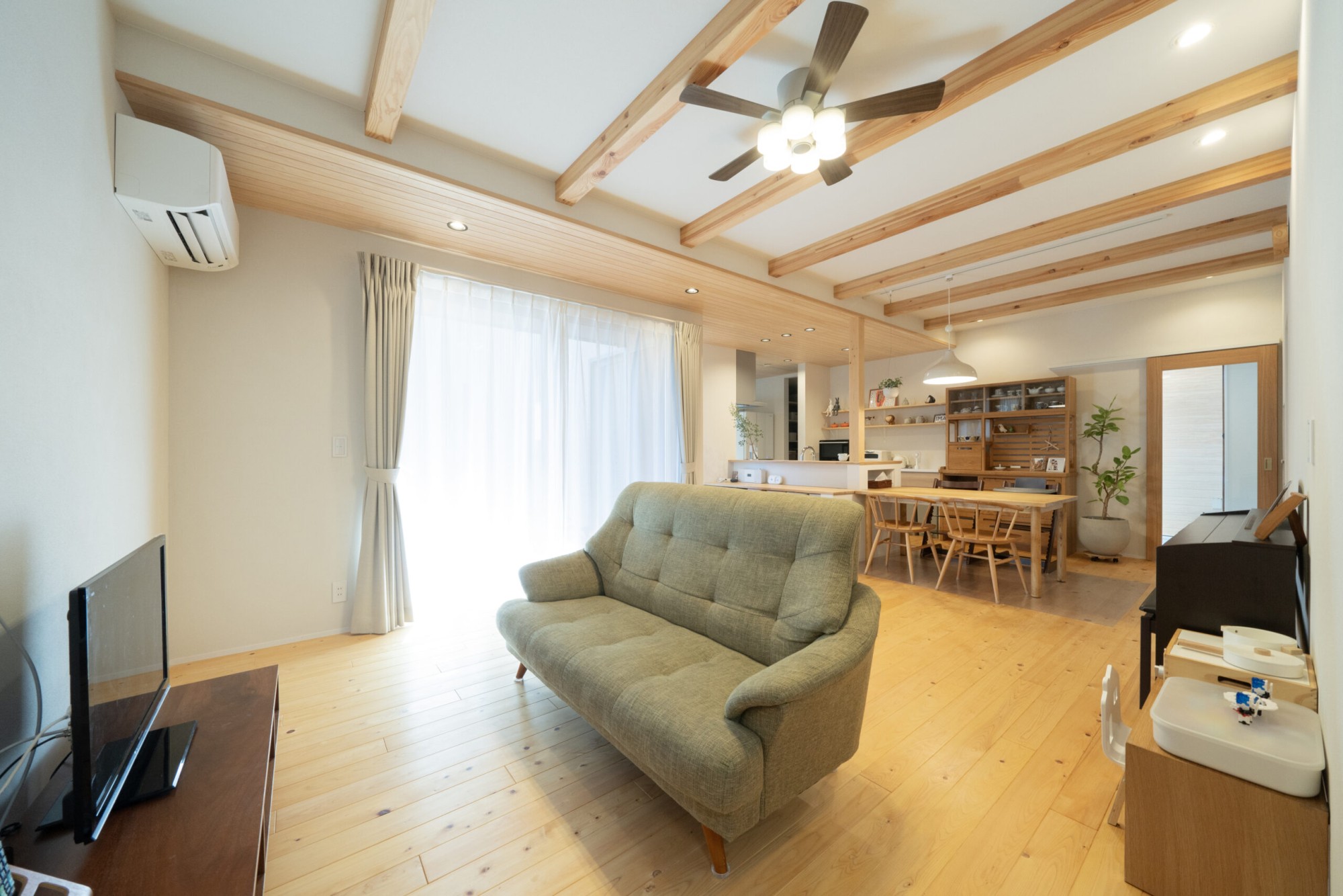 LDKはL字型の22帖。天井部分が少し高くなっているため開放感のあるリビングとなっています。