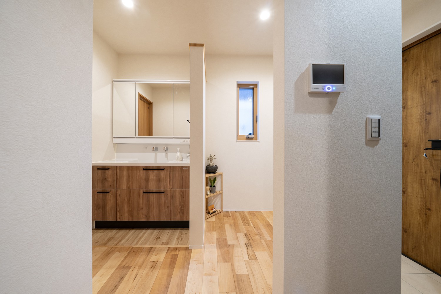 帰ってきてすぐに手を洗うことができますが、玄関とは壁で仕切られているため玄関からは見えません!