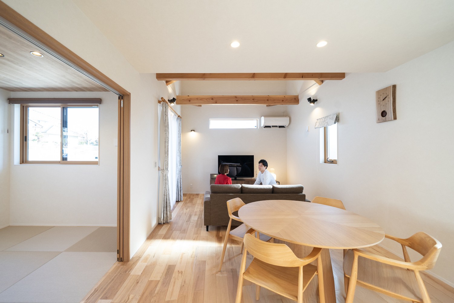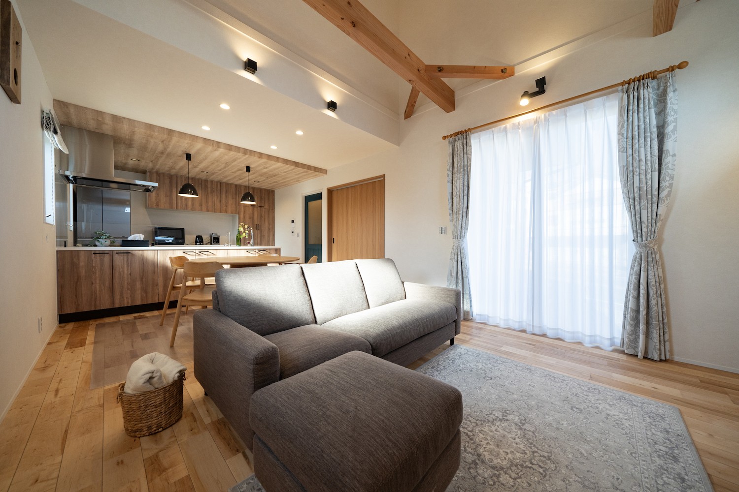 また、梁には無垢材を使用していますので、そのまま出して木のお家をより感じられます!