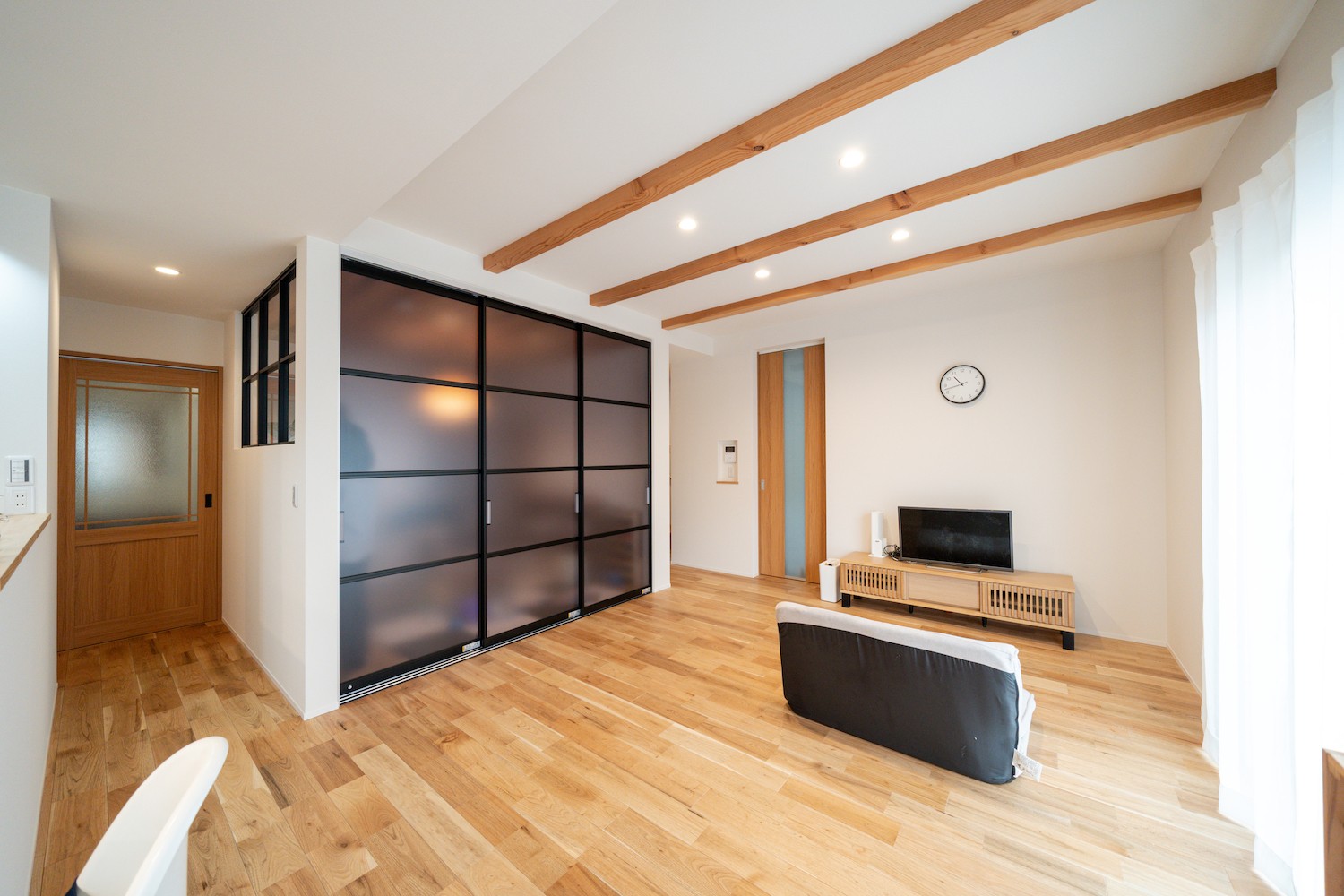 また、黒フレームの建具で空間を緩やかに区切り、