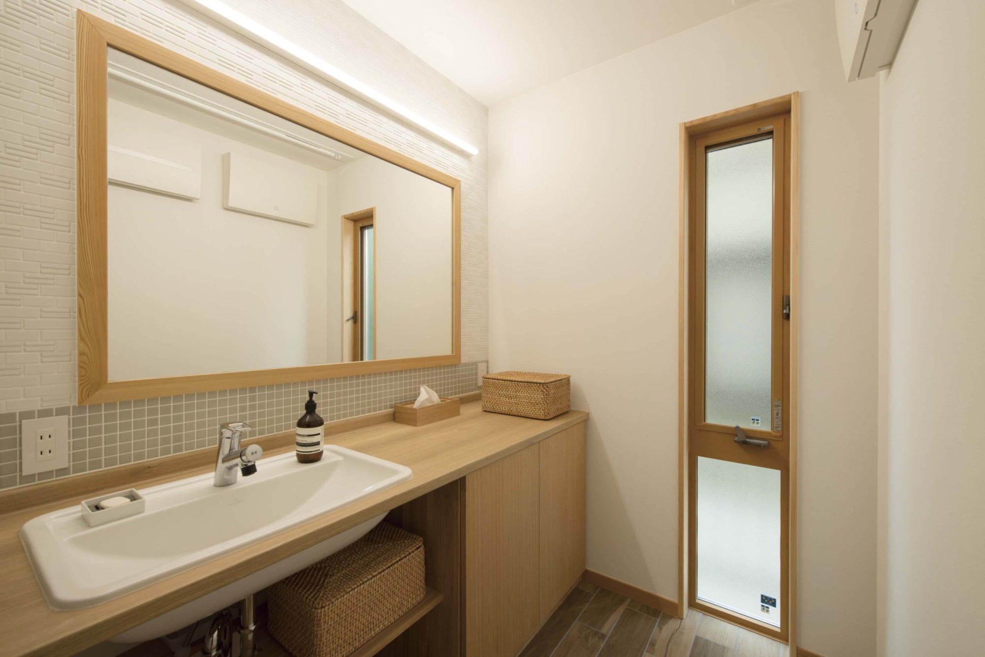洗面台とミラーは既製品を使用していますが、