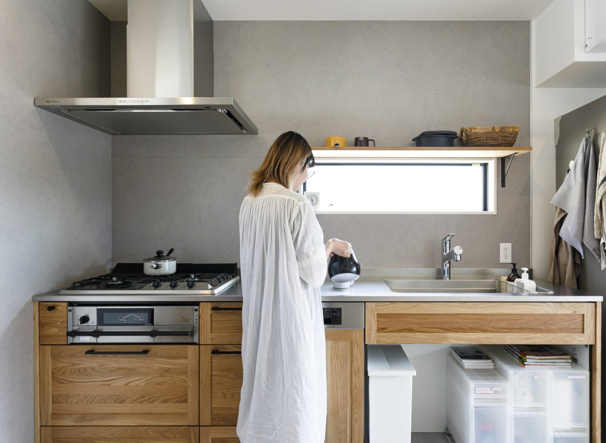 調理中の視界を気にすることはない分、ダイニングやリビングに背を向けての作業になるため
