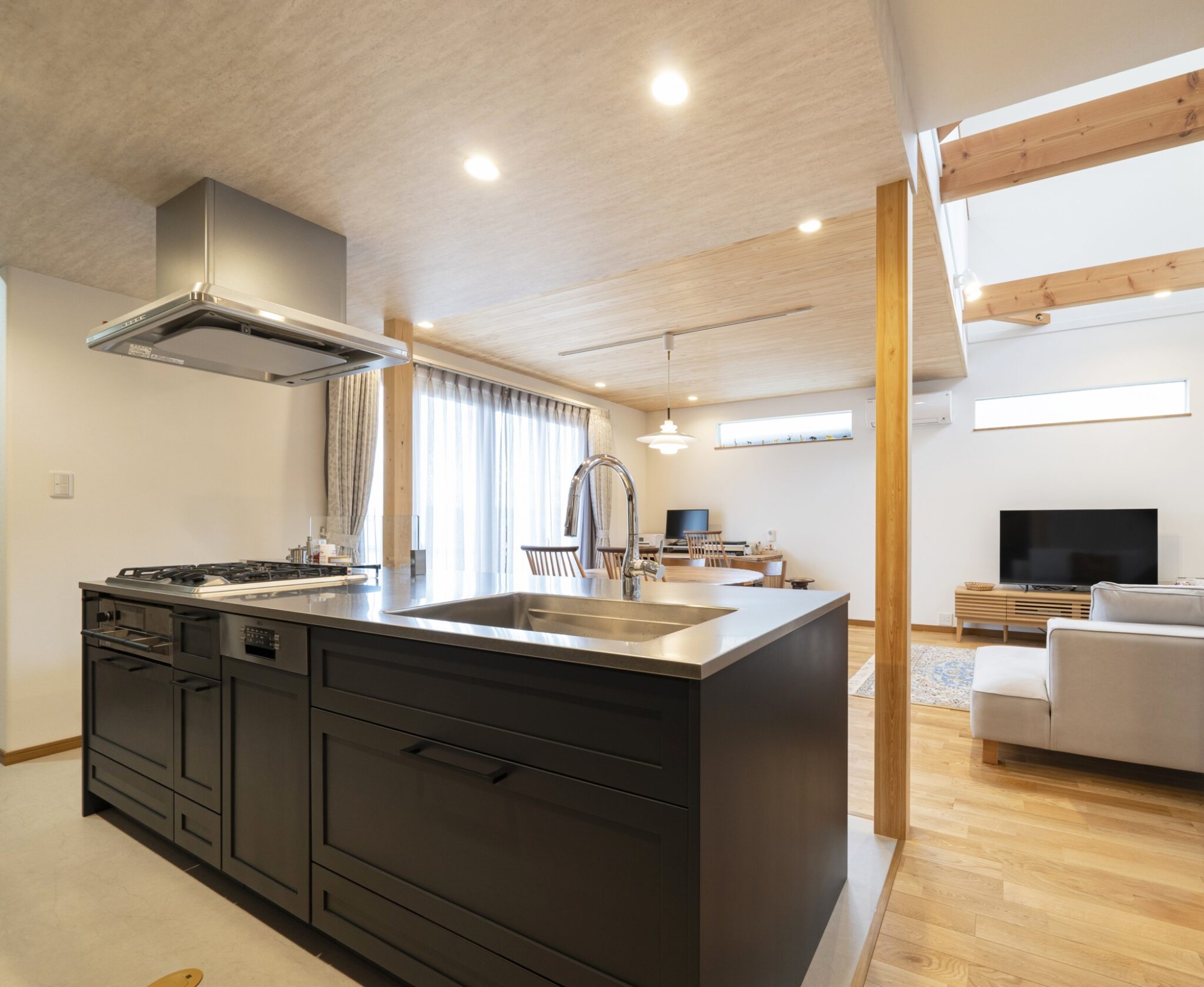 オープンキッチンタイプで、キッチンとLDの間に壁がないので広く一体感を味わえます。