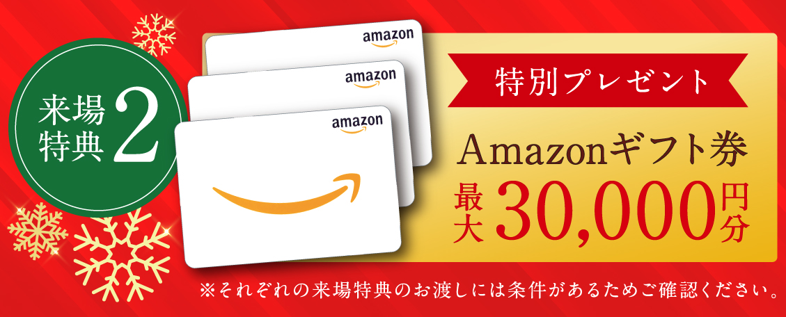 <今だけ!>ご来場特典として<30,000円分>のギフトカードをプレゼントいたします!