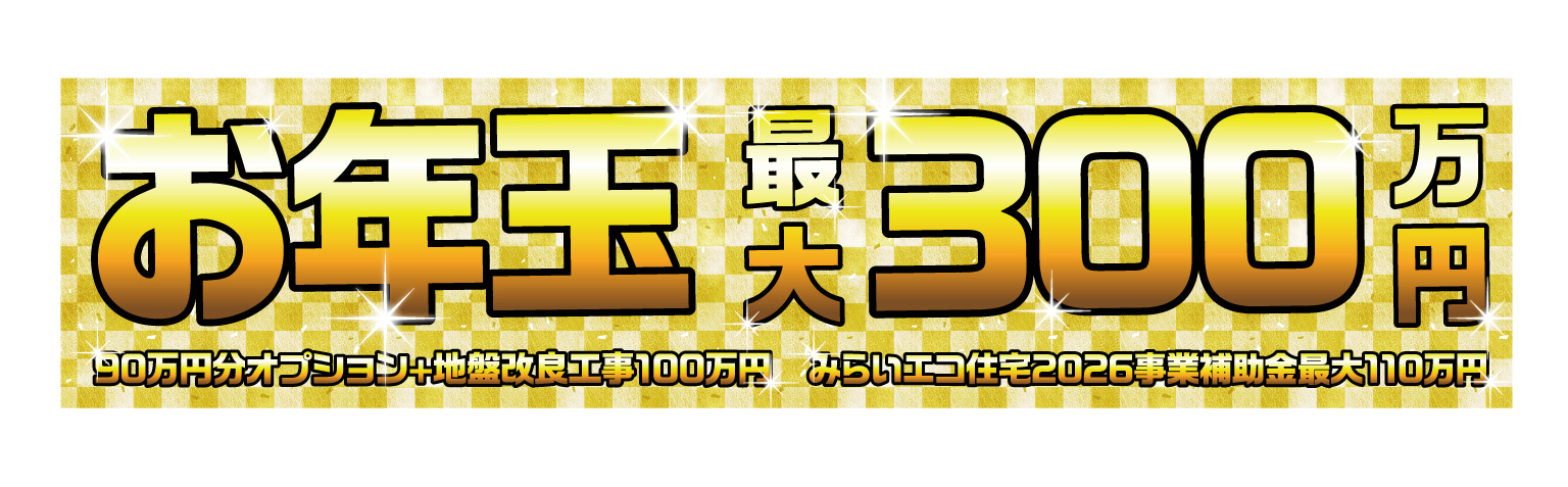 最大190万円(90万円分のオプション+地盤改良工事費100万円) + みらいエコ住宅2026事業補助金最大110万円