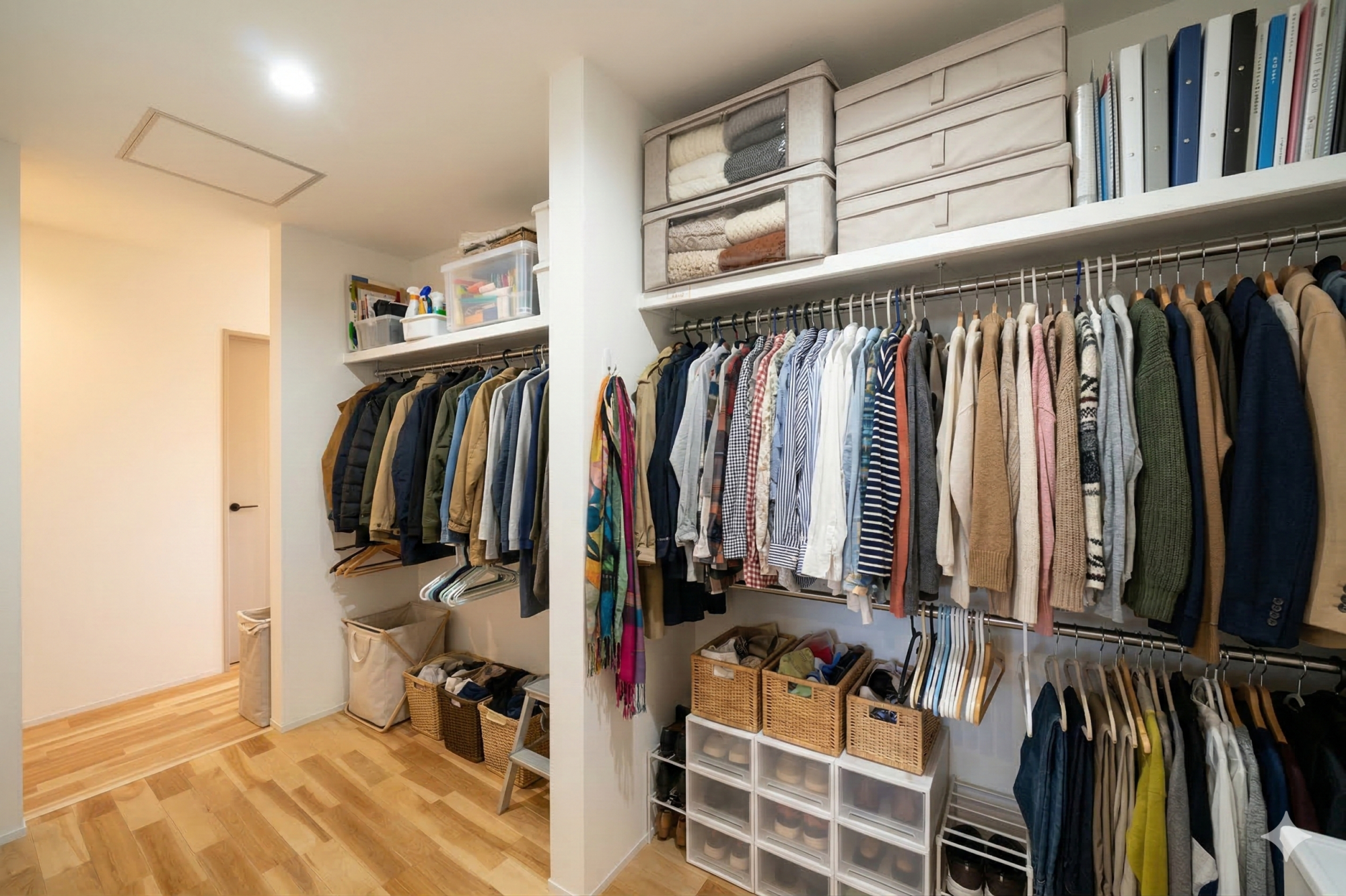 ウォークインクローゼットを複数配置し、衣類や荷物をしっかり収納。