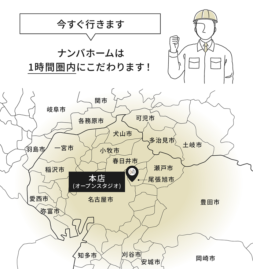 ナンバホームは、施工エリアを