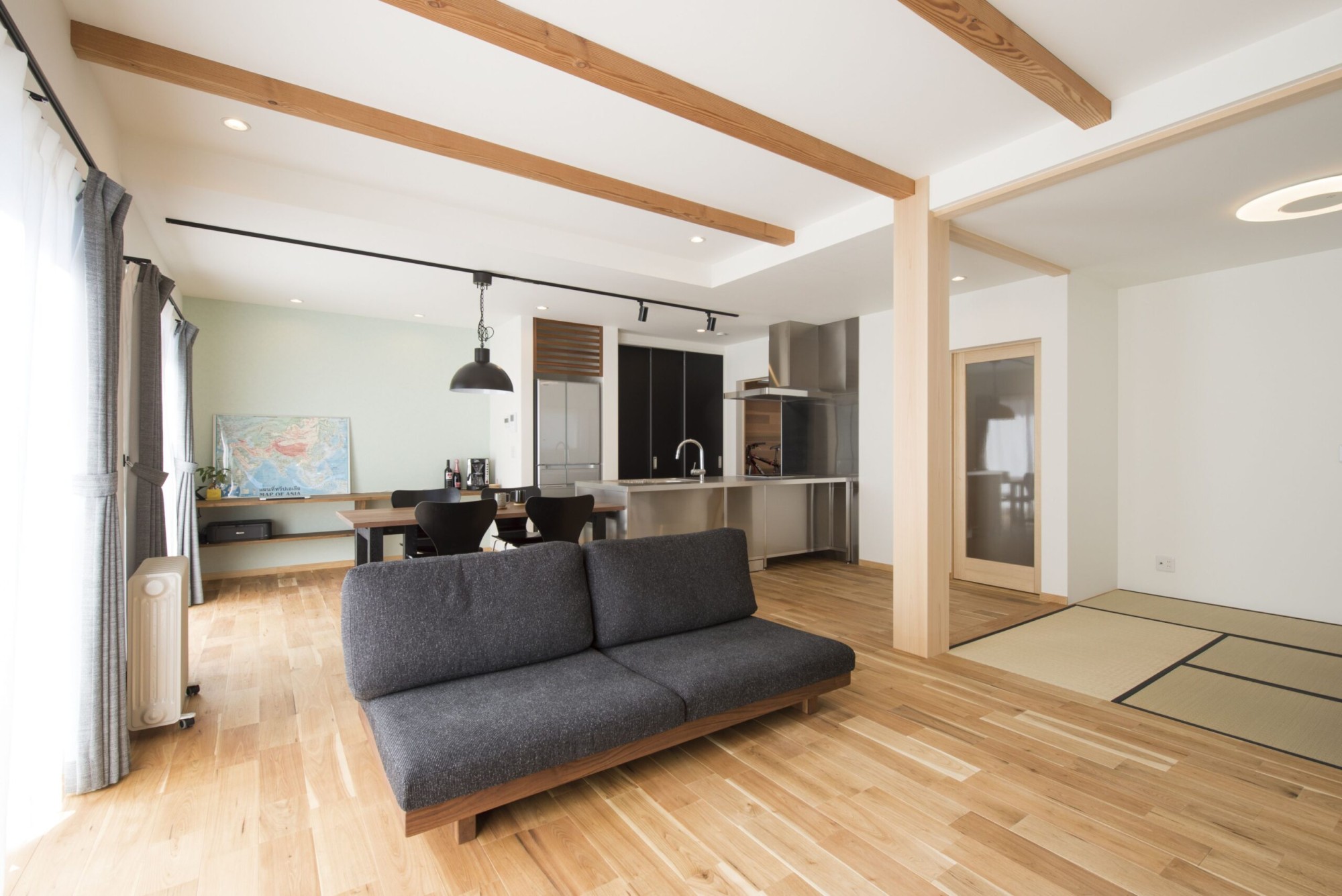テーマは和モダン。イグサの畳が癒しの雰囲気を演出しています。そんな大人な雰囲気のお家です。
