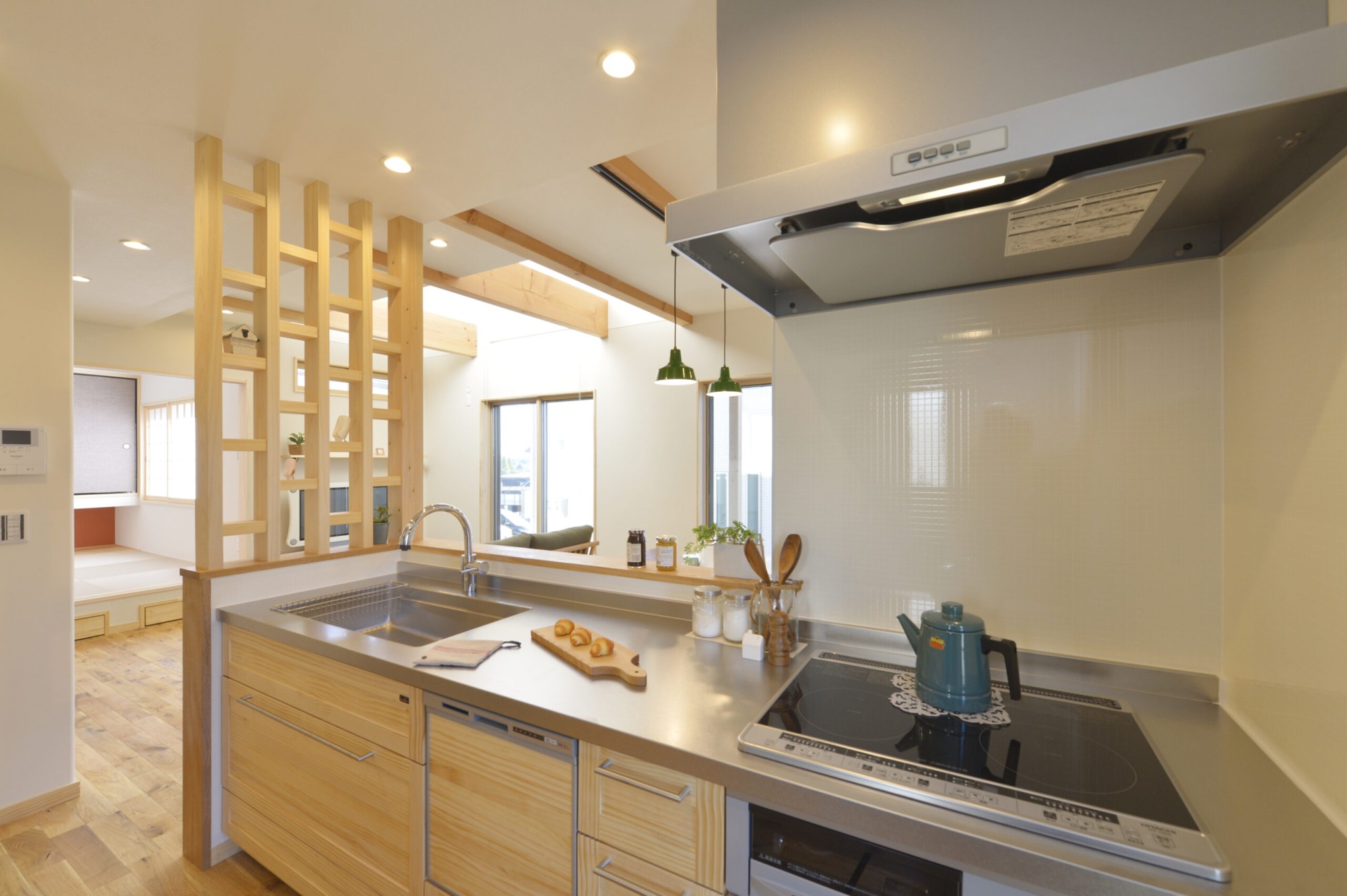 吹き抜けとスタディカウンターが繋がるお家
