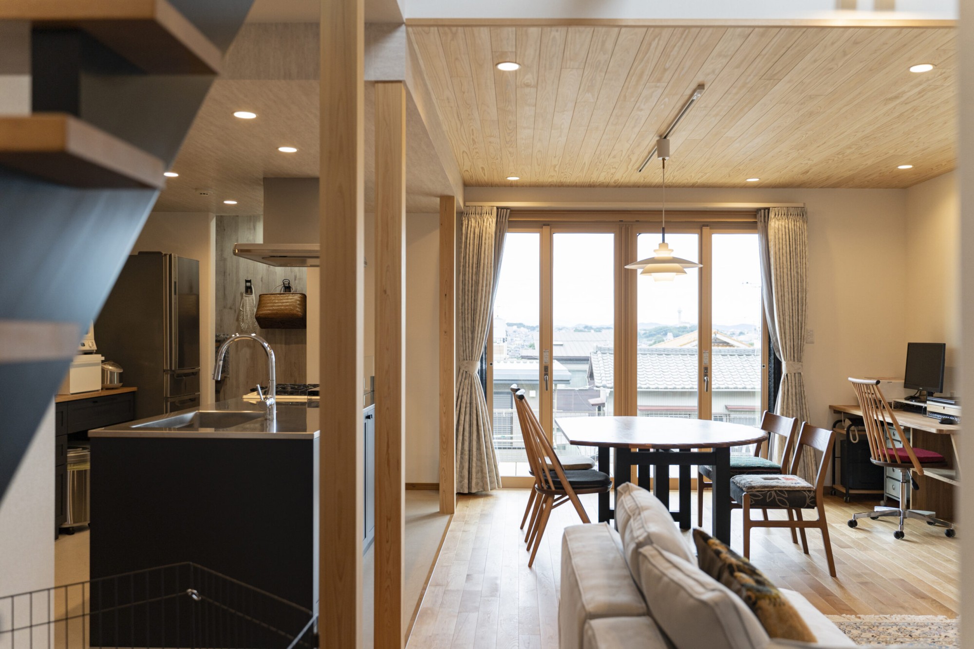 木と重厚感のある黒が、ガレージのテーマを感じさせるお家の雰囲気を造っています。