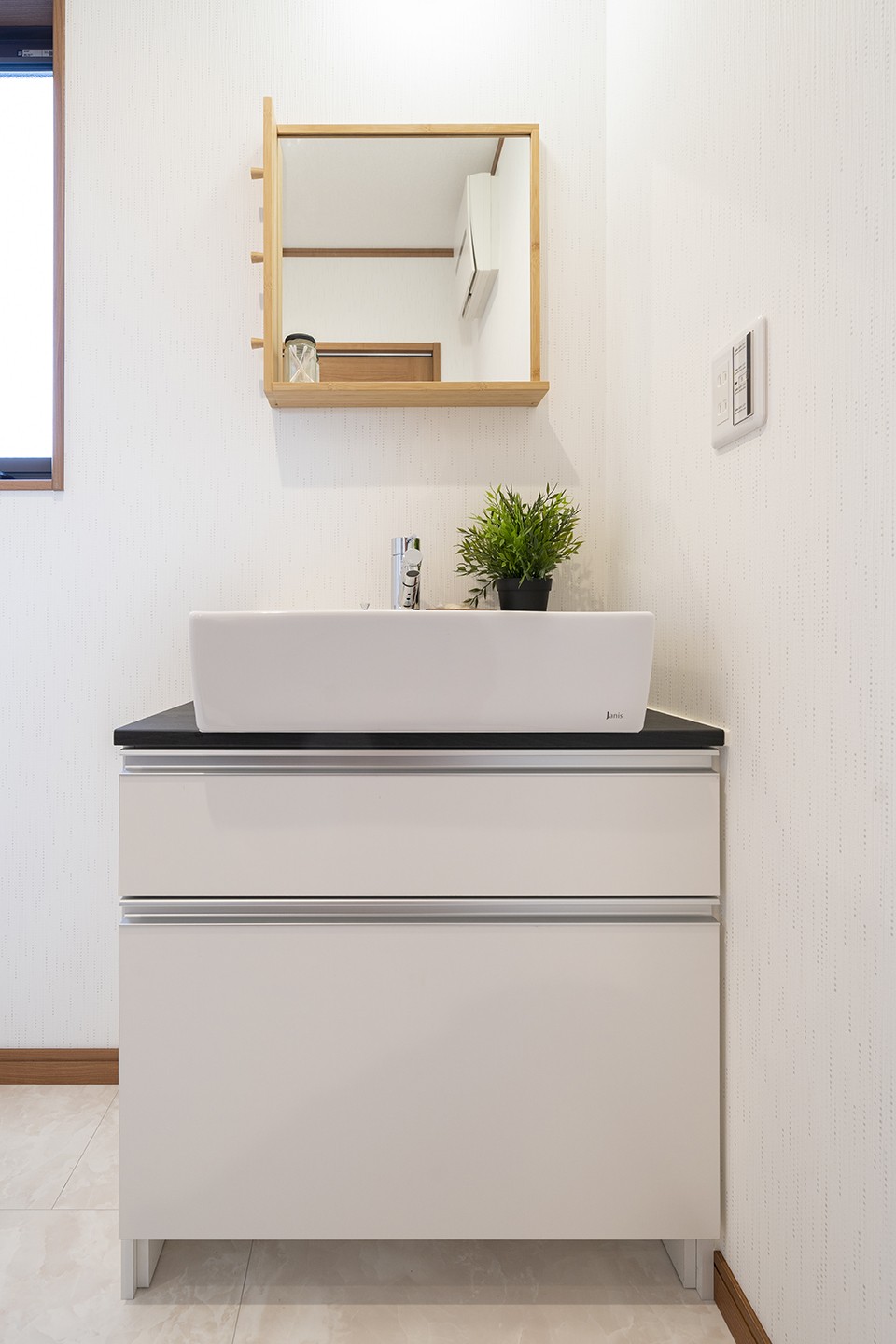 シンプルだけど個性のある洗面化粧台は家族だけのもの。