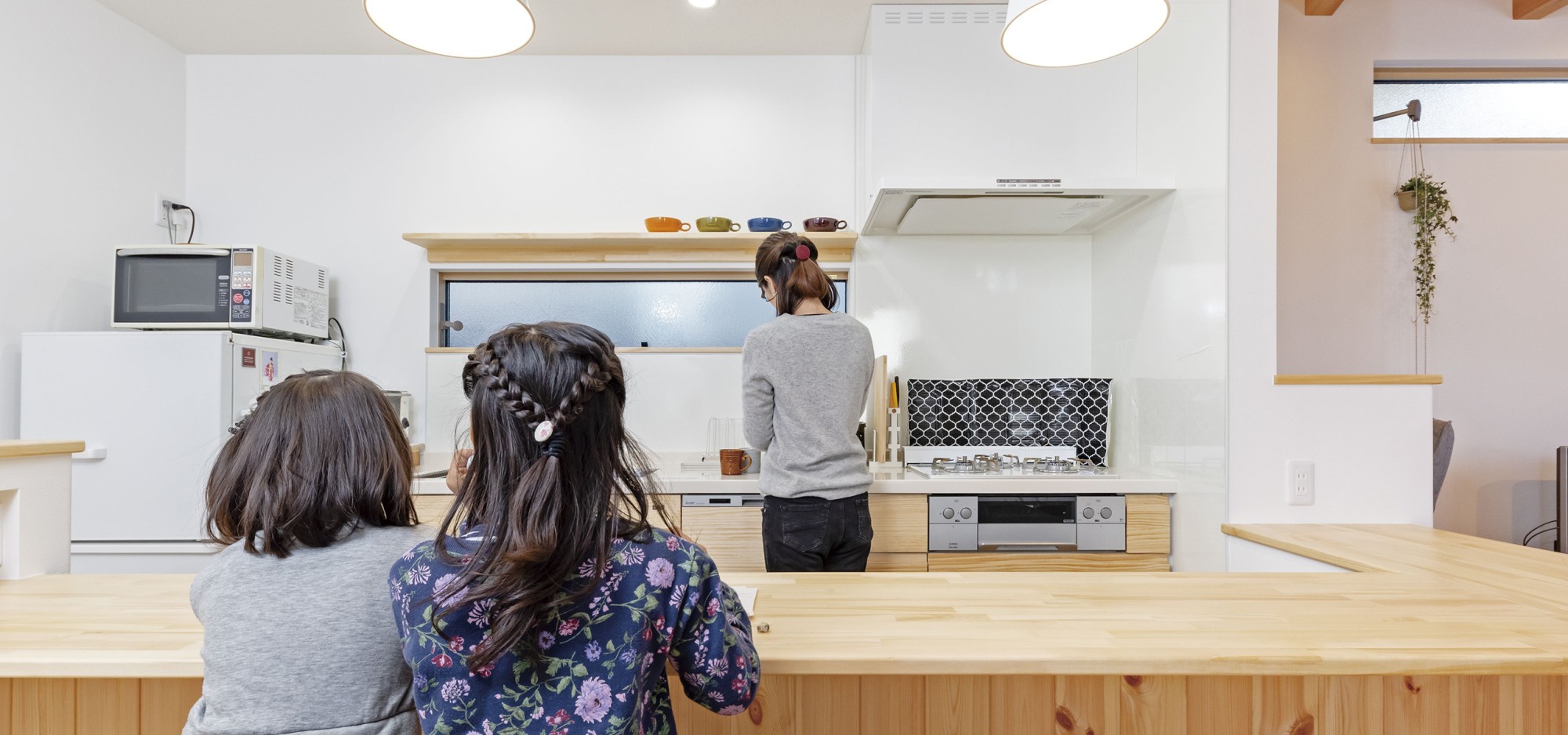 かわいいがコンセプトの、白と木を基調にしたキッチン。
