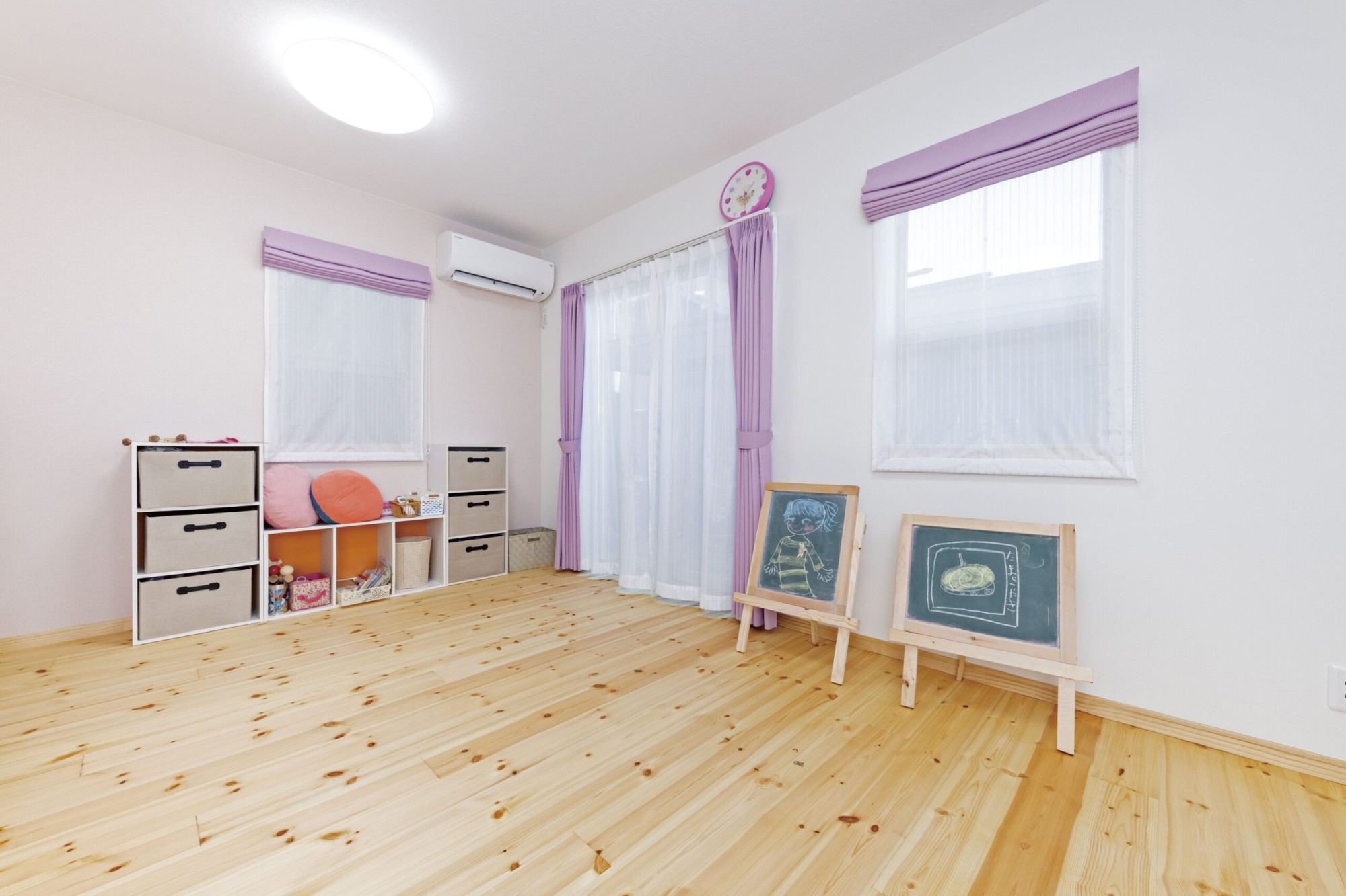 子供部屋は10畳の大きな空間。扉は2枚、将来は間仕切りもできる仕様になっています。