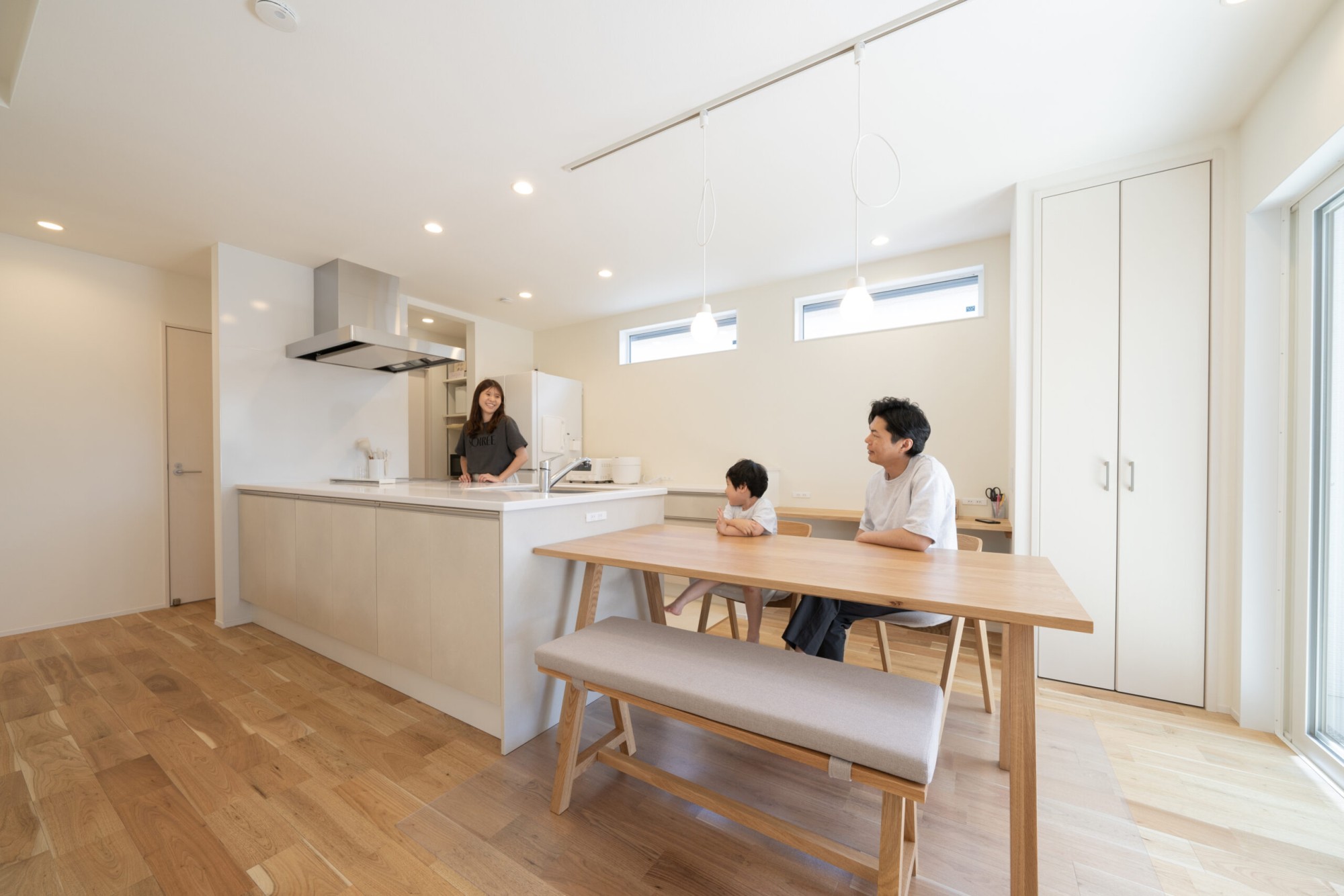 キッチンとダイニングが横並びで家事導線が楽に◎