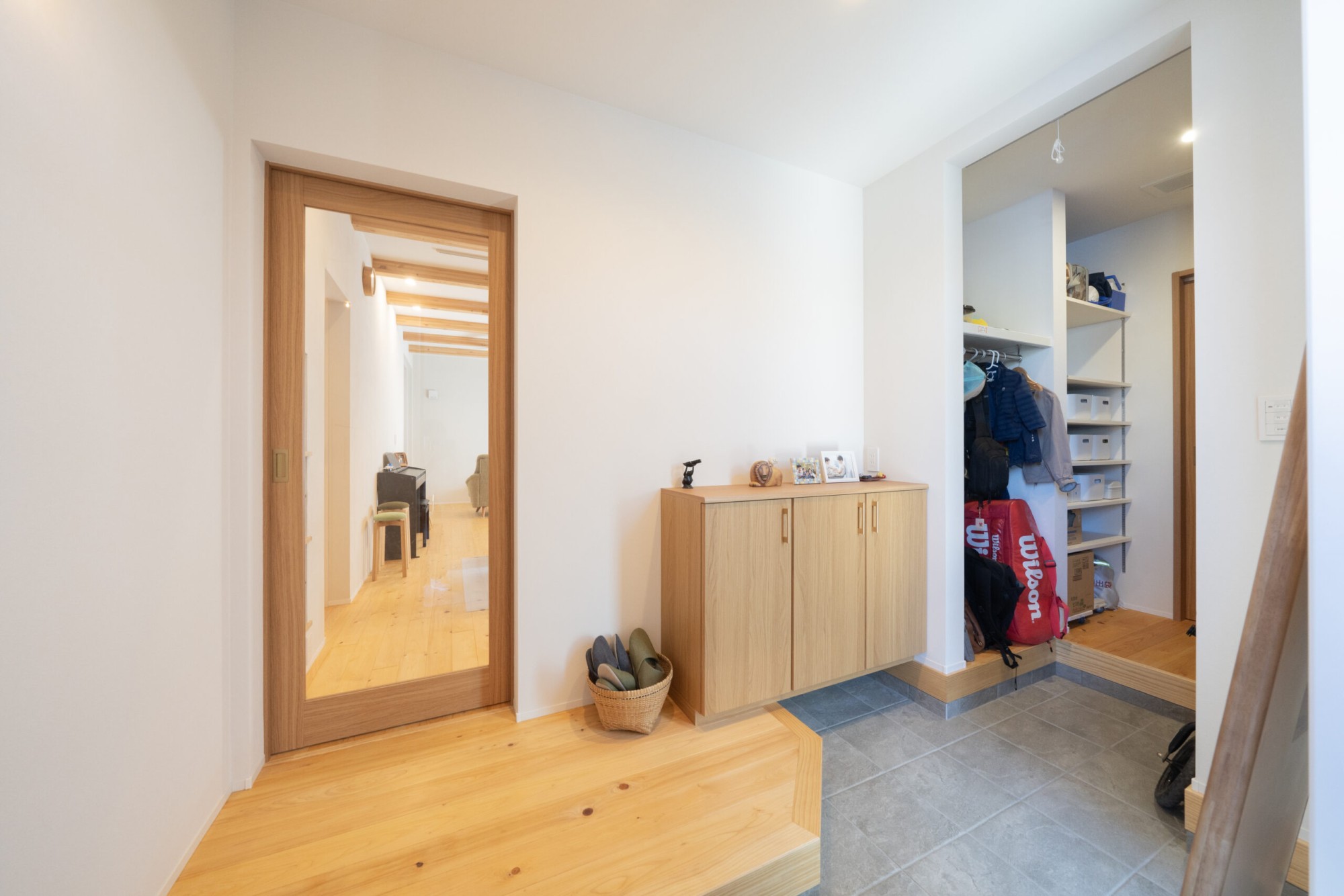 広々とした玄関。シューズクロークは上から下までしっかりと収納することができ、収納力抜群です。