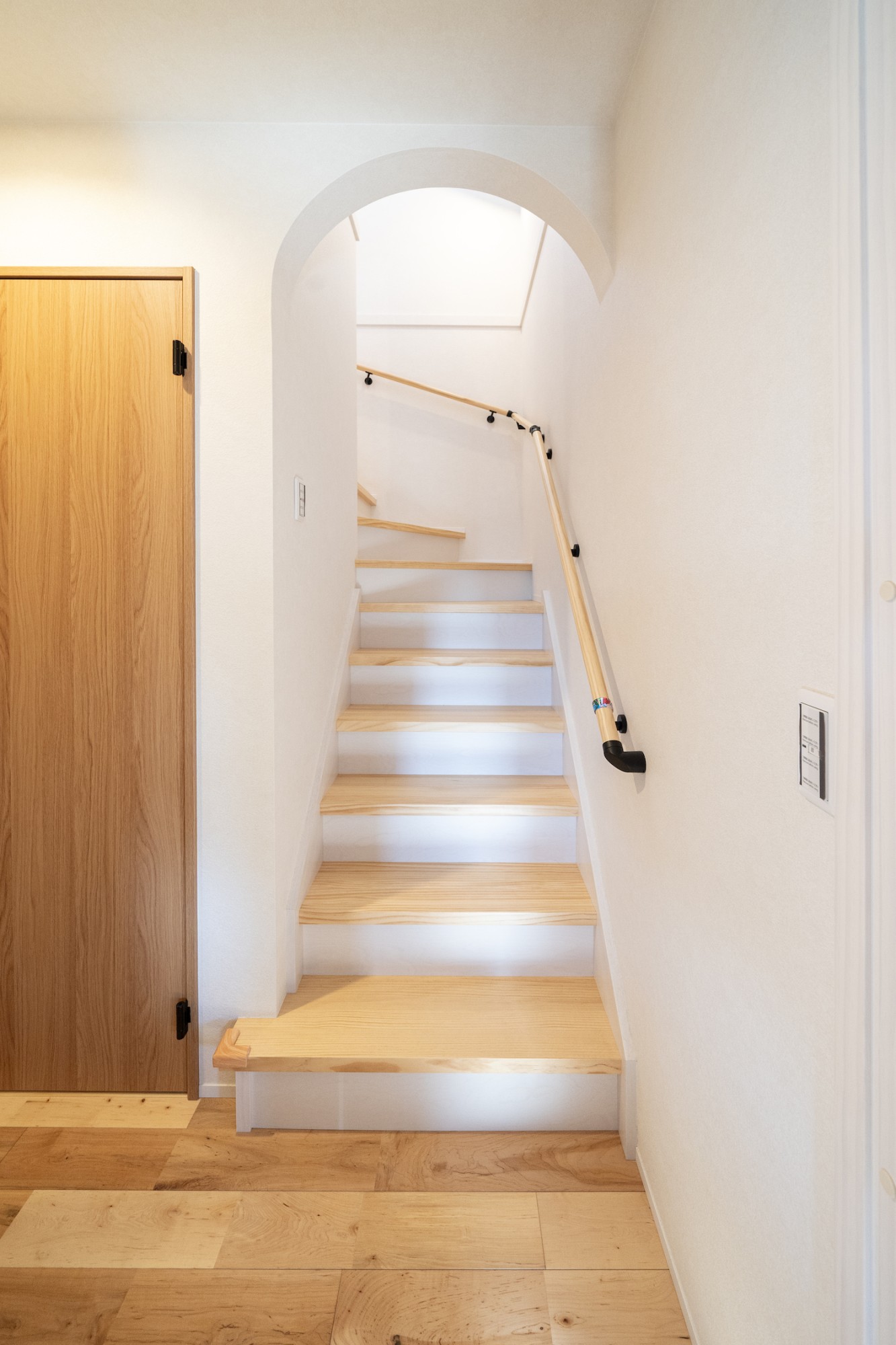 2階へ行く時にはアーチの垂れ壁が可愛らしく柔らかい雰囲気で迎えてくれます。