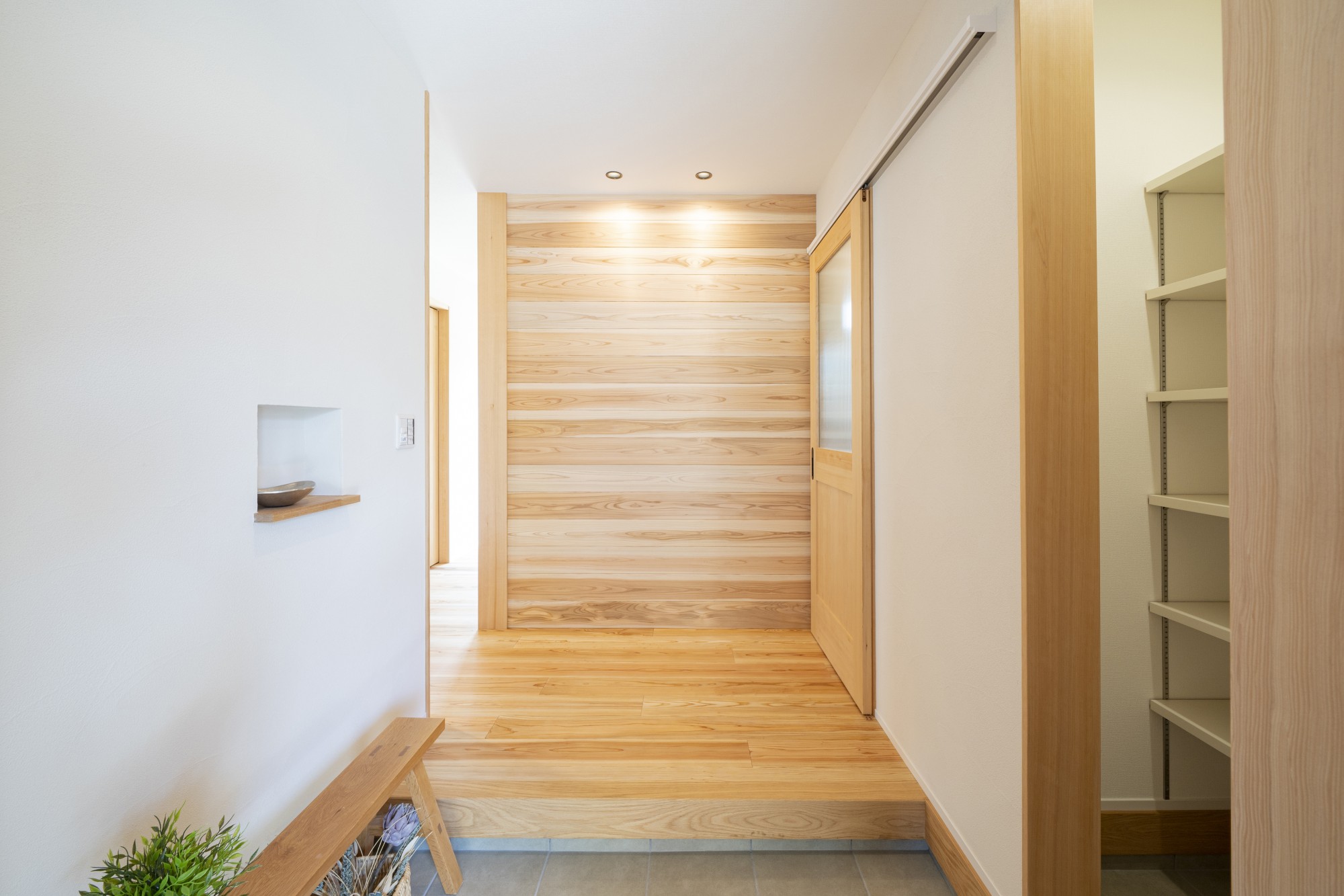 「ただいま」と帰ってきて、まず目に入るのが杉の板張り。