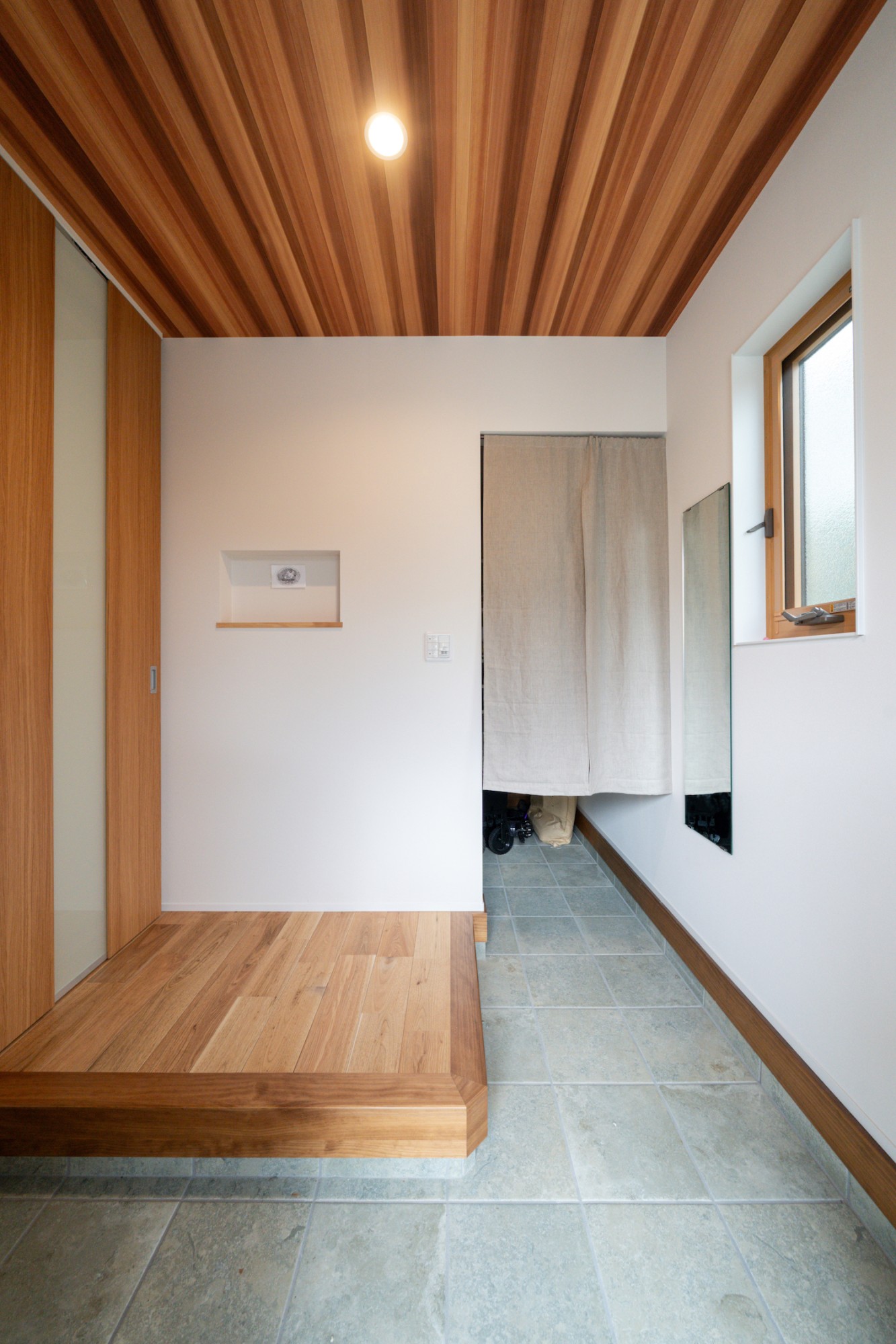 縦ラインの入った扉と相まって、すっきりと奥行きを感じられる玄関に仕上げています!