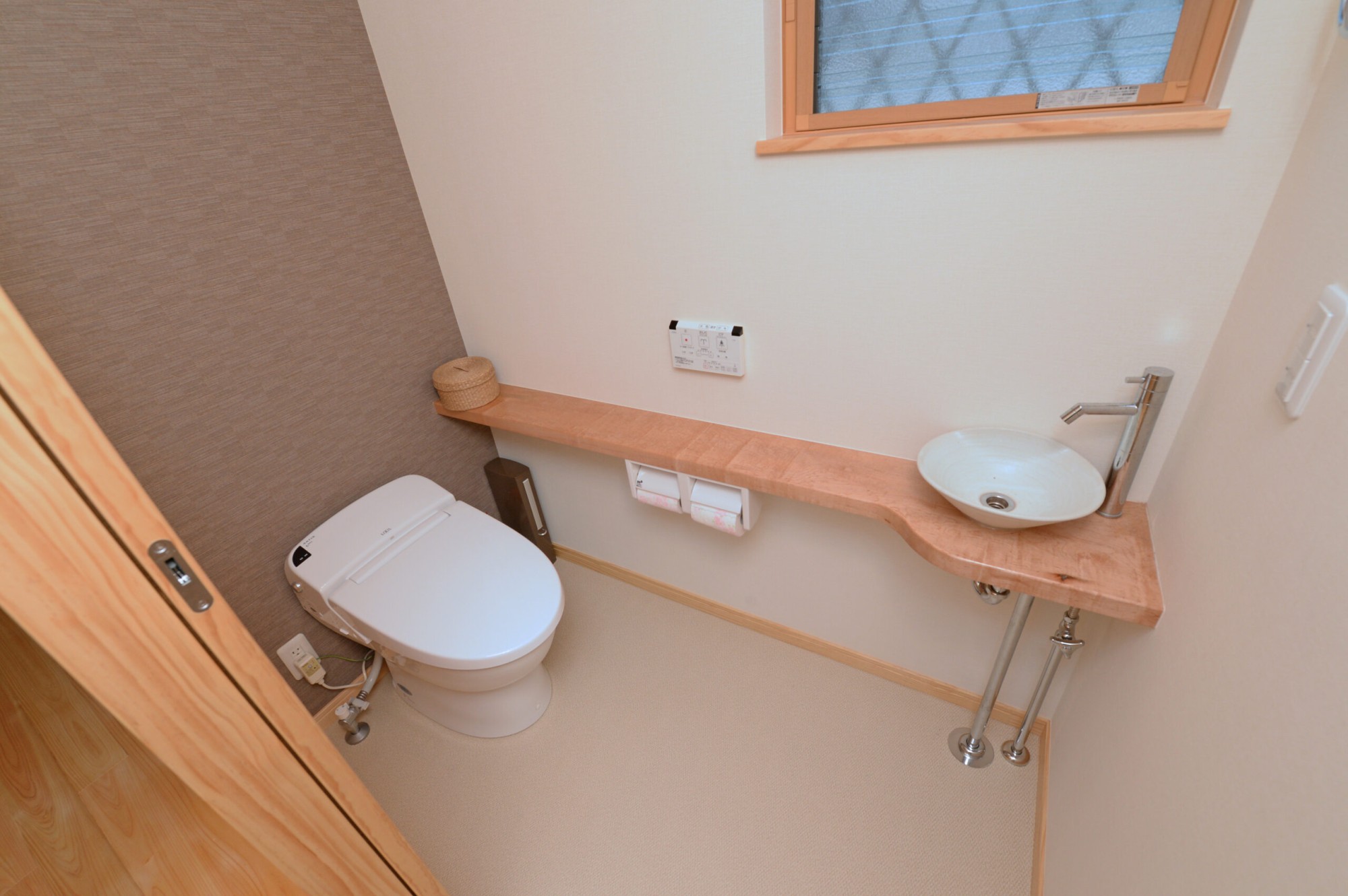 トイレの手洗いボウルも自分たちで選んでいオリジナルに仕上げました。